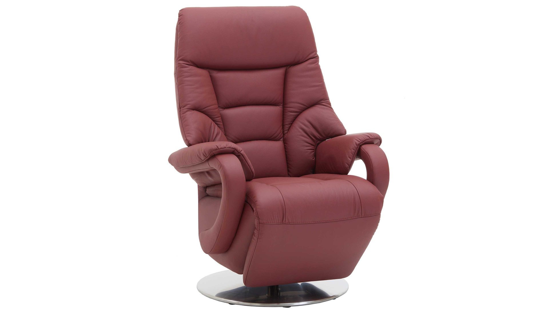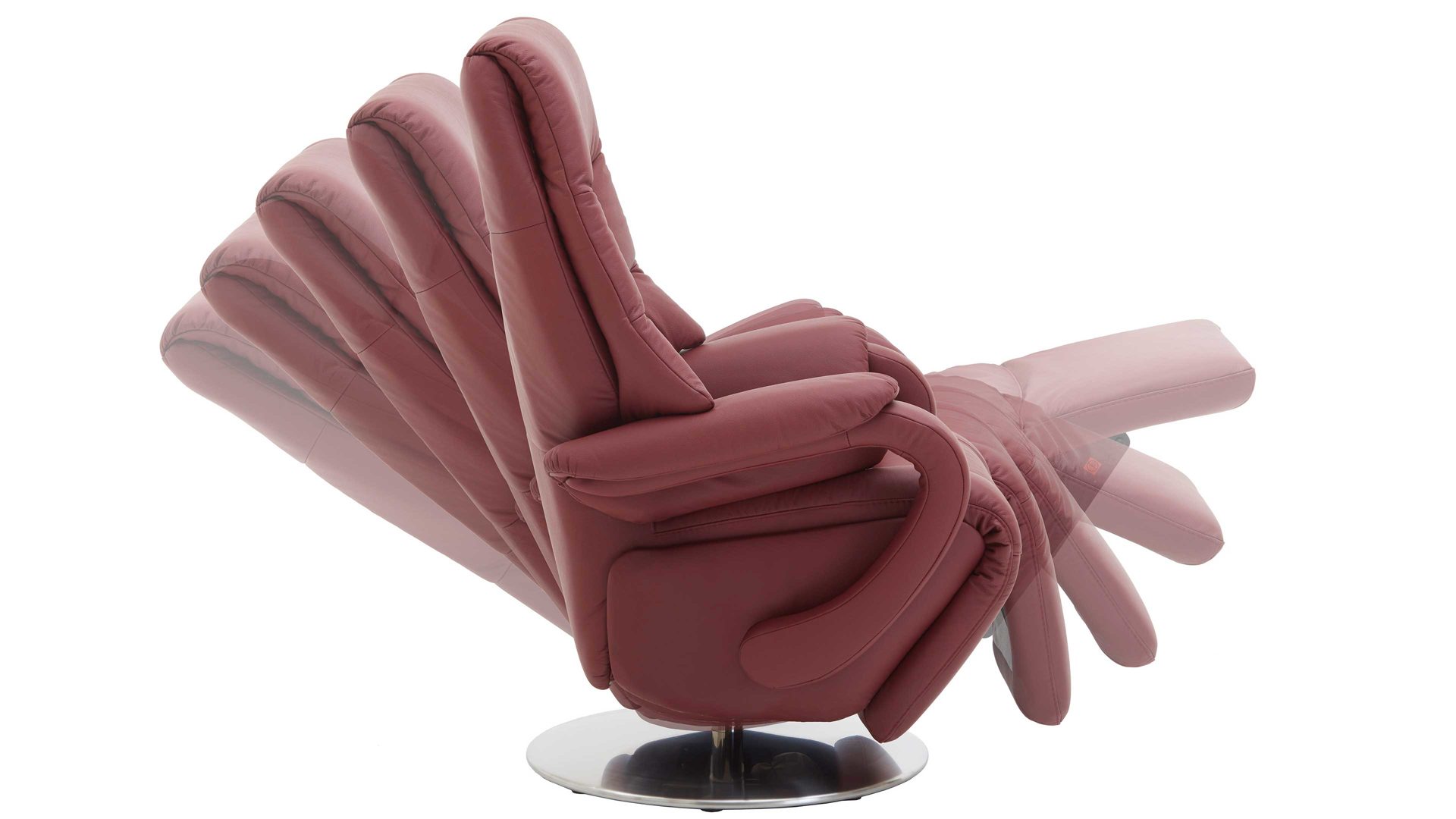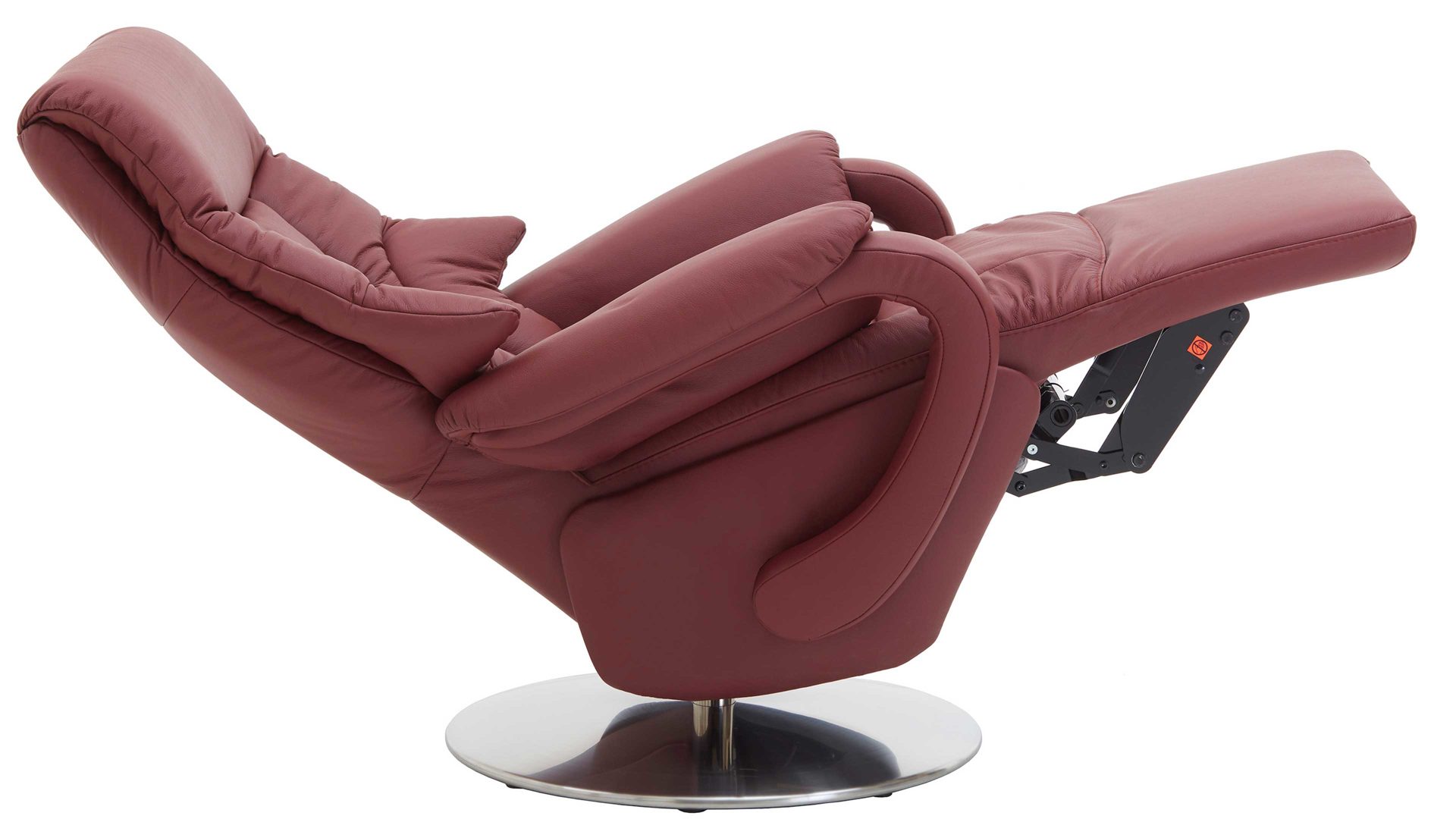 Dieser Relaxsessel kombiniert einen robusten glänzenden Edelstahl-Tellerfuß mit einem stilvollen merlotfarbenen LongLife-Lederbezug. Durch die top aufeinander abgestimmten Materialien und Farben strahlt der Fernsehsessel moderne Eleganz aus. Für die nötige Stabilität sorgt der Stahlrohrrahmen. Er macht den TV-Sessel bis 130 kg belastbar. Die Maße des hochwertig verarbeiteten Relaxsessels belaufen sich auf ca. 80 x 116 x 80 cm (BxHxT), bei einer Sitzhöhe von ca. 49 cm und einer Sitztiefe von ca. 55 cm.