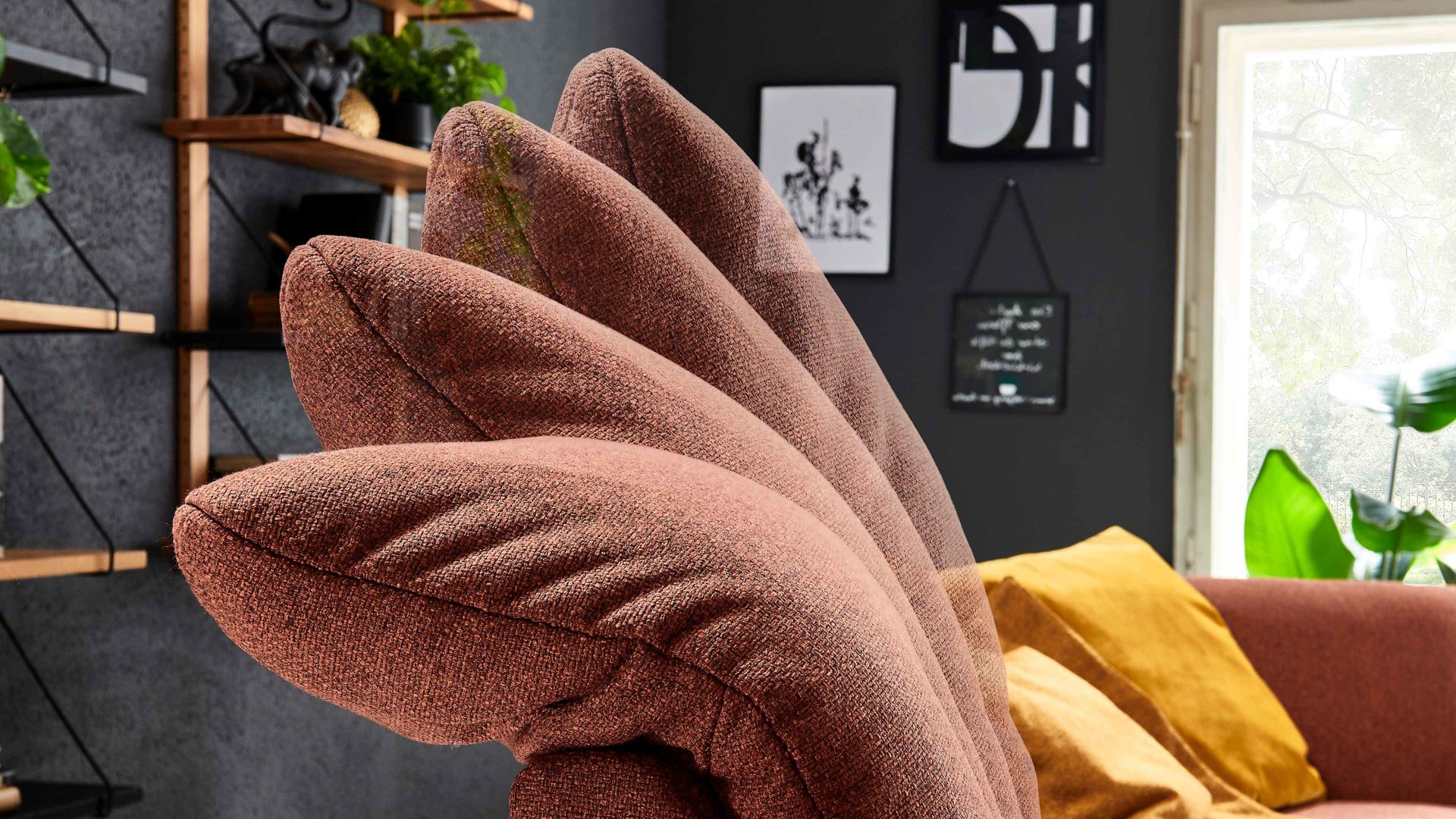 Zierkissen sowie weitere dargestellte Einrichtungsgegenstände sind separat gegen Mehrpreis bestellbar.