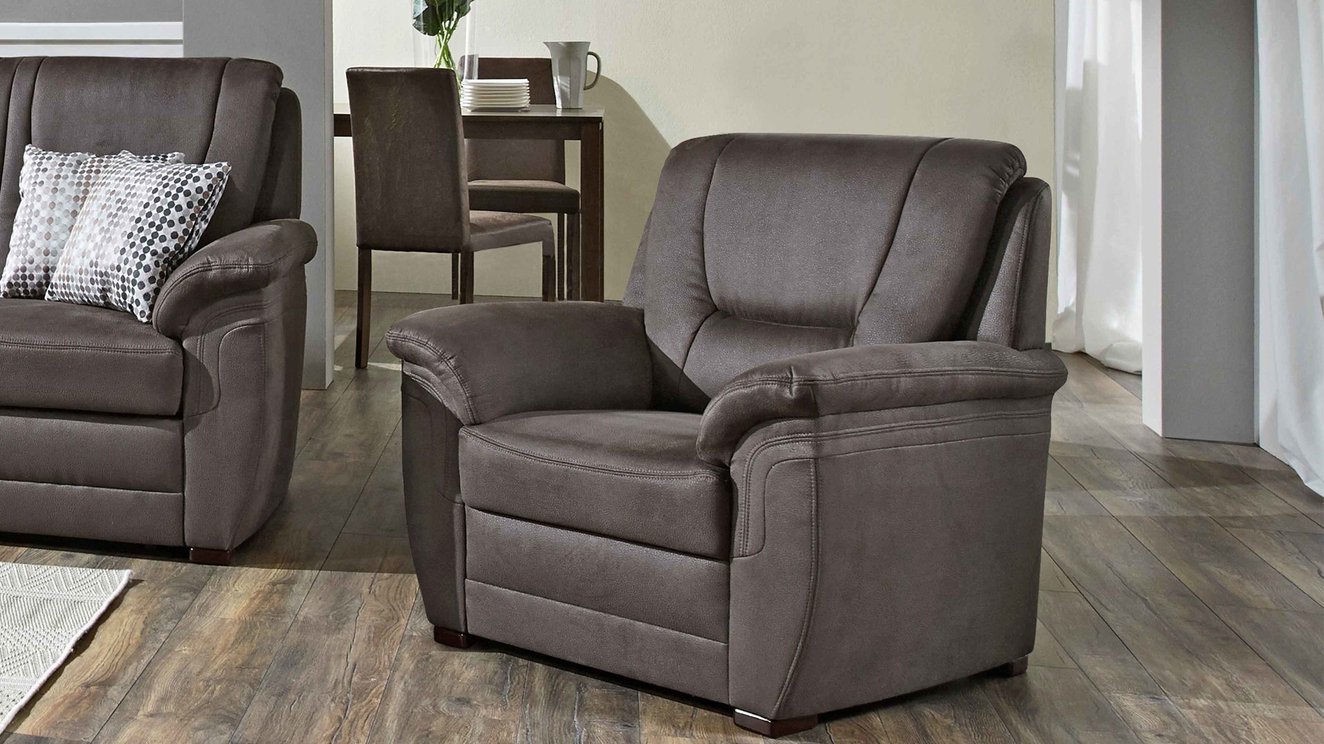 Gästen bieten Sie den Sessel, den Sie mit dem großen Typenplan und der großen Bezugauswahl Ihren Wünschen anpassen, als Sitzgelegenheit an. Praktisch für Sie: Passende Sofas sowie weitere Funktionen und Ergänzungen sind gegen Mehrpreis bestellbar.