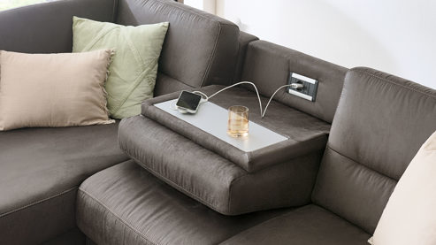 das Rückenpolster wird nach vorn geklappt und die Funktionen uneingeschränkt nutzbar