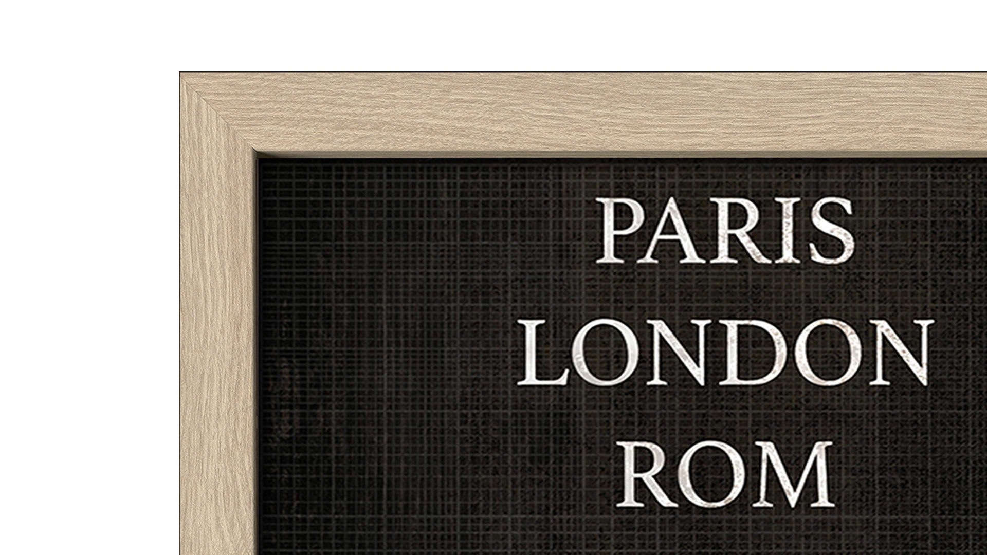 das Motiv ist staubgeschützt hinter Floatglas und rundum mit schwarz ummantelteten MDF-Leisten Country eingefasst