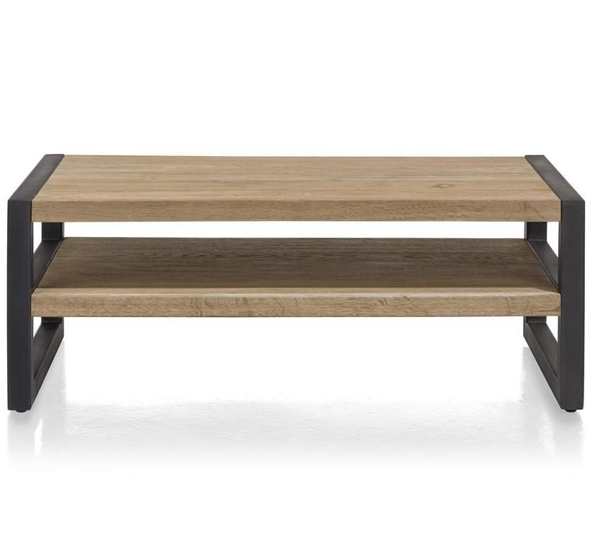Der Couchtisch Brooklyn 37144RWB aus dem Hause Habufa kombiniert einen tollen Materialmix mit praktischem Stauraum. Der Tisch wird aus Metall, massiven Eichenholz und MDF 3D Eichenfurnier hergestellt. Die Oberfläche des Holzes ist bewusst ursprünglich belassen, Wachstumsrisse, Astlöcher und Unebenheiten sind gewollt und tragen der Charakterbildung des Couchtisches Brooklyn bei. Manche stellen werden mit einem schwarzem Spachtel gefüllt, der optimal mit dem Metall harmoniert. Dank des Zwischenbodens bietet der Couchtisch von Habufa zusätzlichen Stauraum für Zeitungen, Fernbedienungen o.Ä.