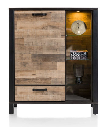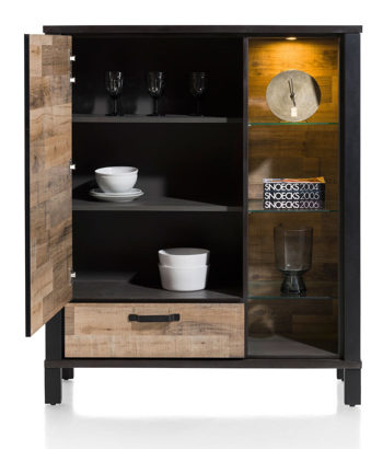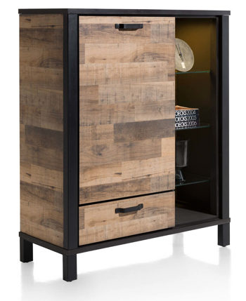 Das Highboard Habufa Sardinie 42455DRI ist mit seiner Breite von ca. 115 cm ein echtes Platzwunder. Hinter einem Schubkasten und einer Tür bietet Ihnen der Hersteller verdeckten Stauraum und Platz für allerlei verschiedene Utensilien. Sie erhalten das Möbelstück in der Ausführung Laminato driftwood Melamin mit Absetzung in grau. Die Fronten sowie Seiten sind in Melamin (Altholz-Nachbildung) gehalten und sorgen für eine angenehme Atmosphäre in Ihrem Wohn- oder Esszimmer. In den vier offenen Fächern können Sie die Ablagefläche zum Dekorieren, für kleinere Zimmerpflanzen sowie stilvolle Figuren nutzen. Ein besonderes Highlight ist hierbei die integrierte LED-Beleuchtung mit der Ihre Lieblingsstücke in Szene gesetzt werden. Ihren Vorstellungen und Wünschen werden bei dem Sideboard keine Grenzen gesetzt. Passend hierzu finden Sie weitere Möbel der Serie Sardinie in unserem Online-Shop. Das Möbelstück wird montiert geliefert und besitzt eine hohe Sperrigkeit, bitte sorgen Sie dafür, dass es zu seinem Verwendungsort getragen werden kann.