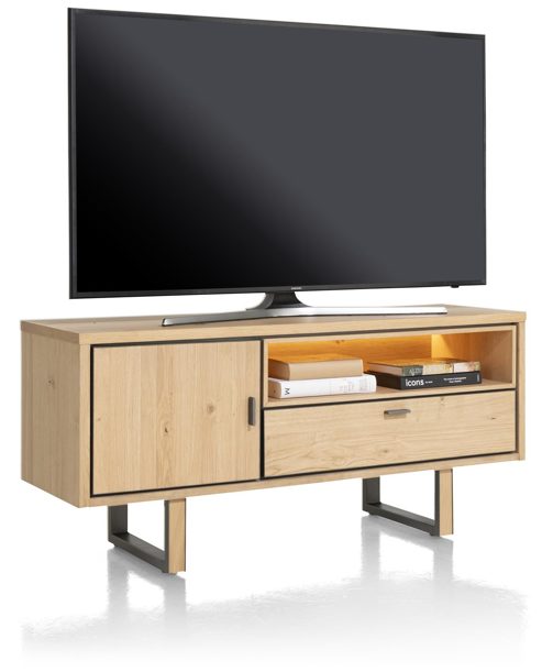 Das Design des Lowboards wird durch die innovativen LED-Leuchten ergänzt, die nicht nur für eine stimmungsvolle Beleuchtung sorgen, sondern auch die Schönheit des Holzes betonen. Ob als dezentes Hintergrundlicht oder zur Hervorhebung von Dekorationsobjekten, die LED-Beleuchtung verleiht Ihrem Raum eine warme und einladende Atmosphäre.