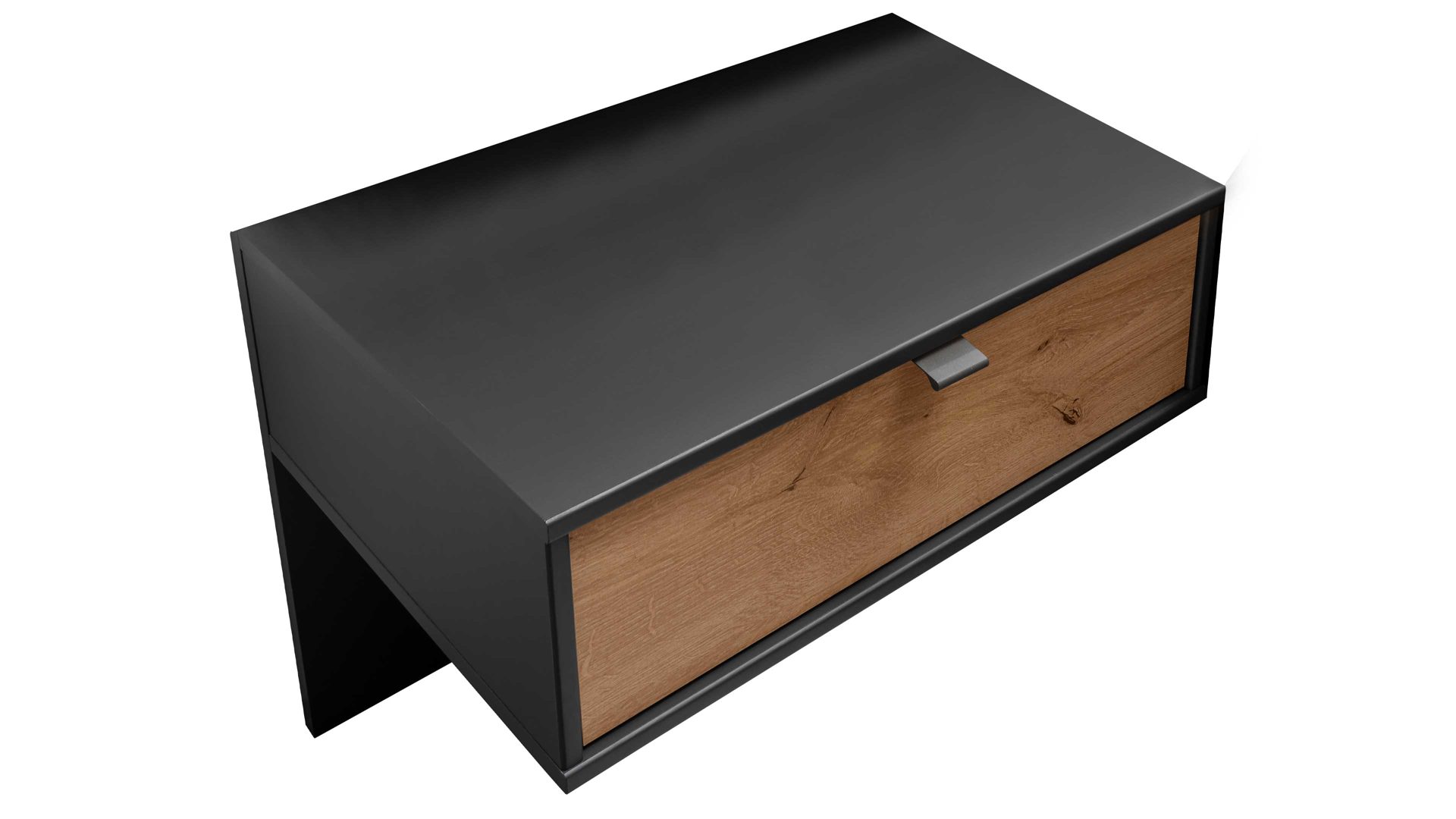 matte graphitfarbene Oberflächen, kombiniert mit biancofarbener Eiche-Nachbildung