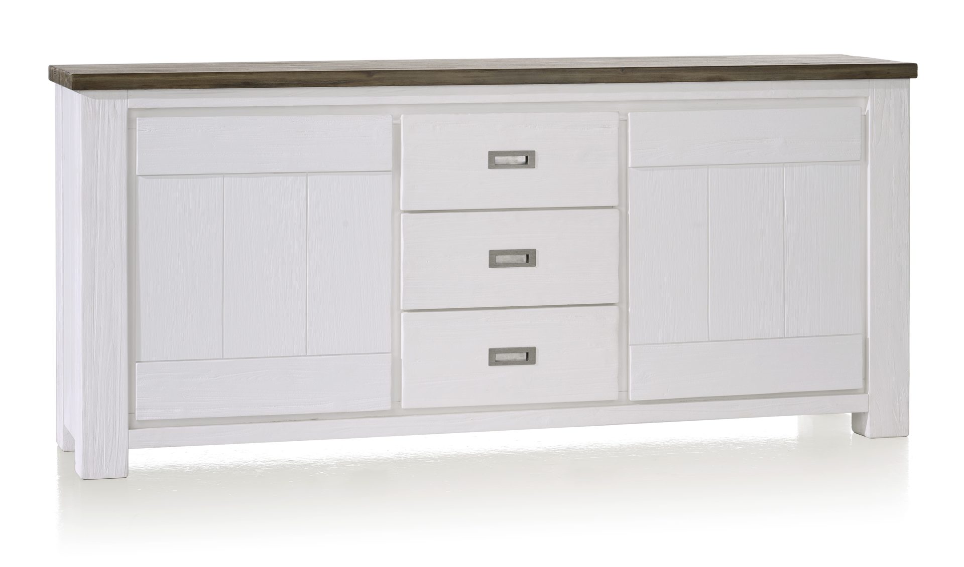 Mit dem Deaumain-Sideboard 24691W,G von dem holländischen Möbelhersteller Habufa setzen Sie ihren Fernseher bestmöglich in Szene. Für die Herstellung wurde traditionell verarbeitetes, teilmassives, Akazienholz verwendet, welches in den Farben pampas grey und off white lackiert wurde. Durch die Farbkombination erhält das Möbelstück einen modernen Look und lässt sich perfekt mit anderen Möbeln aus der Deaumain-Serie kombinieren. Der moderne Landhausstil wurde auch hier beibehalten und bringt einen warmen und ländlichen Charakter mit sich. Die, für die Habufa-Deaumain-Serie typische, einzigartige Holzmaserung macht jedes Element zu einem Unikat und zeugt von hoher Qualität. Mit 2 großen Türen und 3 Schubladen bietet es ausreichend Platz und hilft ihnen Ordnung in ihr Zuhause zu bringen. Das gesamte Deaumain-Programm finden Sie unter dem Reiter Habufa/Deaumain.