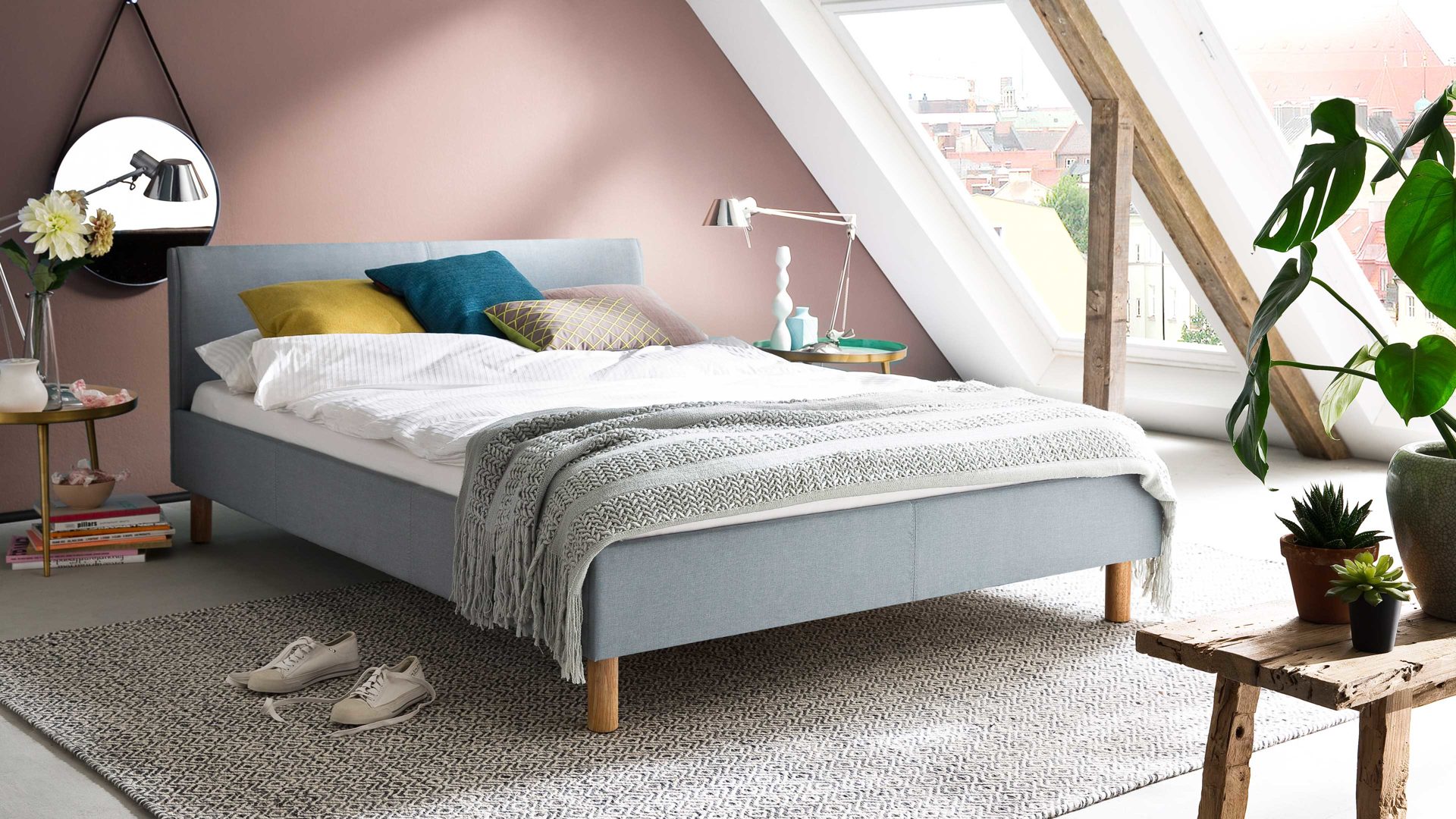 Die Matratze sowie weitere dargestellte Einrichtungsgegenstände sind separat gegen Mehrpreis bestellbar.