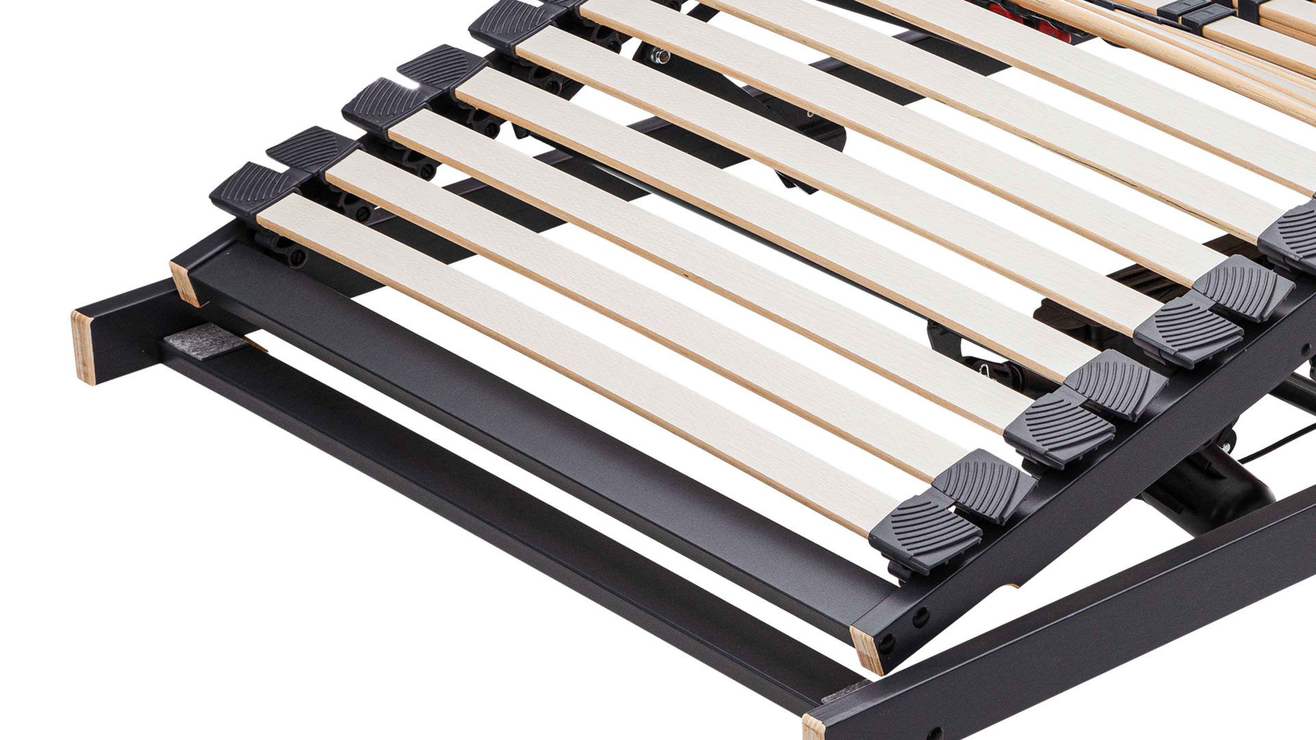 Die elastischen Federleisten sind in langlebigen Hightech-Kappen gelagert, die dauerhaft flexibel bleiben und geräuscharm arbeiten. Verstärkte Querleisten mit Winkelsicherung sowie hochfeste Gelenkschrauben aus Stahl erhöhen die Stabilität zusätzlich und sorgen für eine dauerhaft sichere Konstruktion.