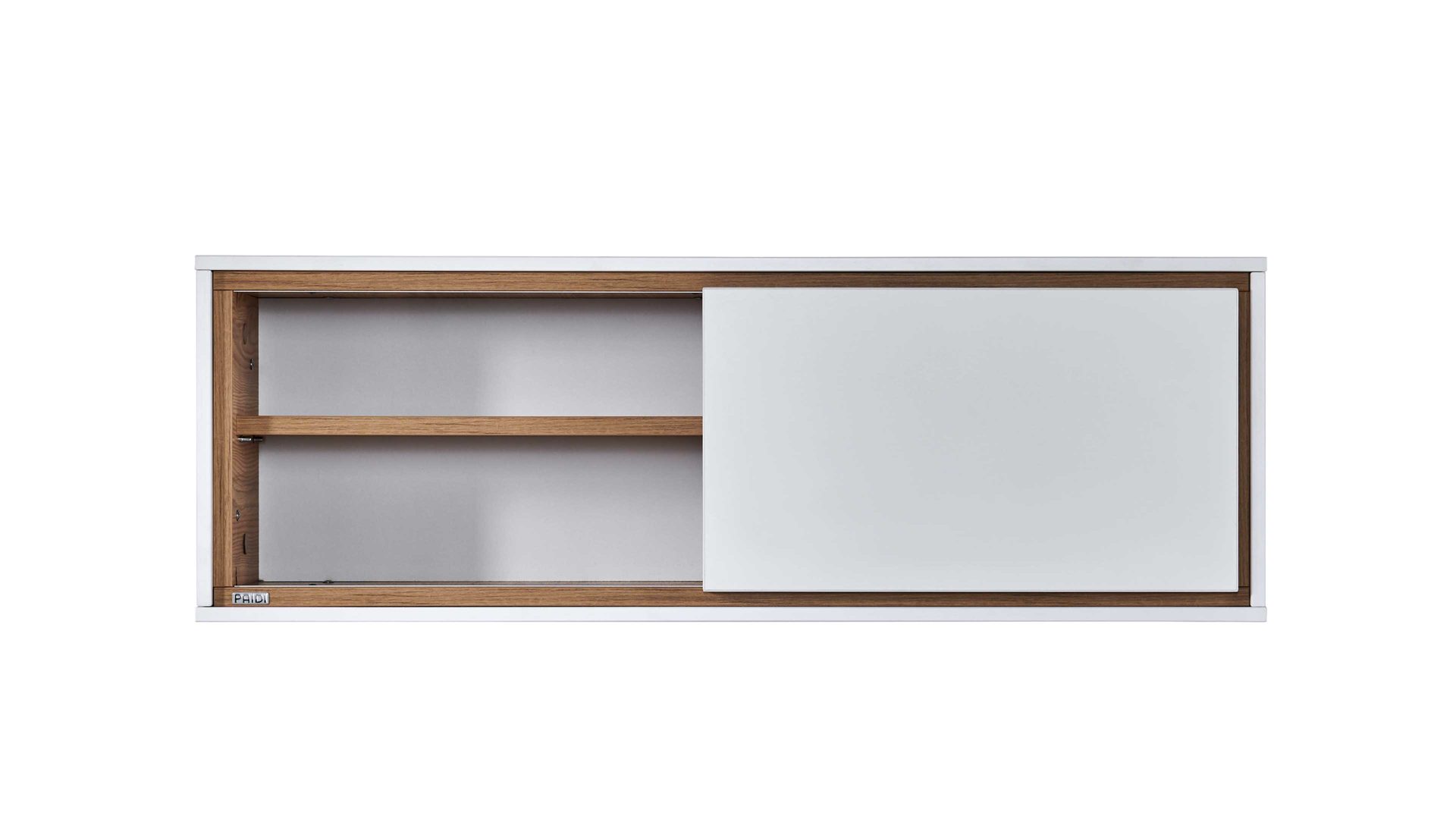 Das PAIDI Lieven Wandregal vereint Modernität und Funktionalität auf harmonische Weise. Die kreideweiße Oberfläche des Regals bildet einen perfekten Kontrast zur Eiche Montana Nachbildung und verleiht Ihrem Babyzimmer eine helle und freundliche Atmosphäre. Das Regal ist mit einer Schiebetür versehen, die das Innere des Regals vor Staub und Schmutz schützt. Eine Mittelwand sorgt für zusätzliche Stabilität und ermöglicht eine flexible Aufteilung des Regals. Der eichefarbene Einlegeboden kann je nach Bedarf rechts oder links montiert werden und bietet ausreichend Platz für die Pflegeprodukte Ihres Babys.