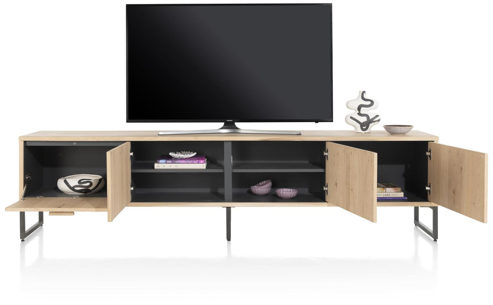 Das Lowboard Castello von Henders & Hazel kombiniert modernes Design mit Funktionalität. Es besticht durch helles Eichenfurnier, elegante Holzgriffe und stabile Metallbeine. Die soft-closing Türen und Schubladen sorgen für sanftes und geräuschloses Schließen. Dank des integrierten Kabelkanals lassen sich elektronische Geräte wie Fernseher oder Spielkonsolen problemlos anschließen, ohne dass störende Kabel sichtbar bleiben. Darüber hinaus ist das Möbelstück in verschiedenen Größen erhältlich und passt sich so optimal den individuellen Bedürfnissen und Raumgegebenheiten an. Egal ob im Wohnzimmer, Schlafzimmer oder Büro – das Lowboard Castello ist ein echter Blickfang, der Design und Funktionalität auf höchstem Niveau vereint.