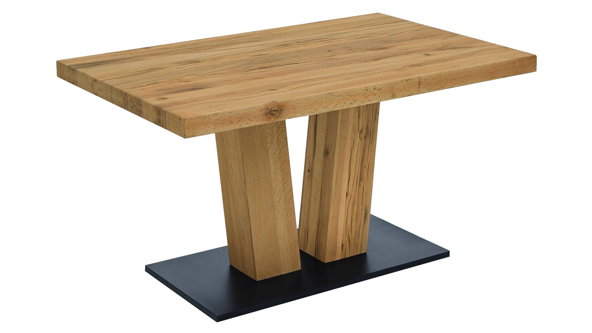 Der DECKER Massivholztisch Volterra Plus ist aus biancofarben geölter und gebürsteter Wildeiche hergestellt.