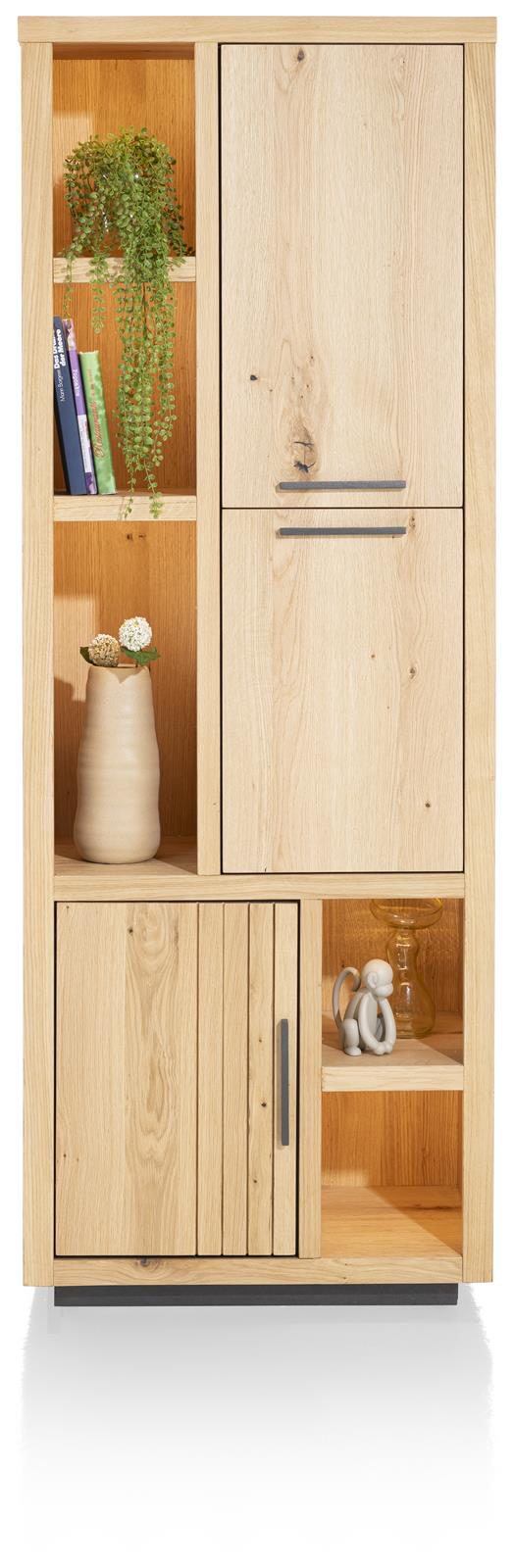 Die natürliche Farbgebung des Eichenholzes verleiht diesem Möbelstück eine warme und einladende Ausstrahlung, die jede Umgebung bereichert. Zusätzlich ist der Vitrine mit einer LED-Beleuchtung ausgestattet, die für eine angenehme Atmosphäre sorgt und Ihre Lieblingsstücke stilvoll in Szene setzt.