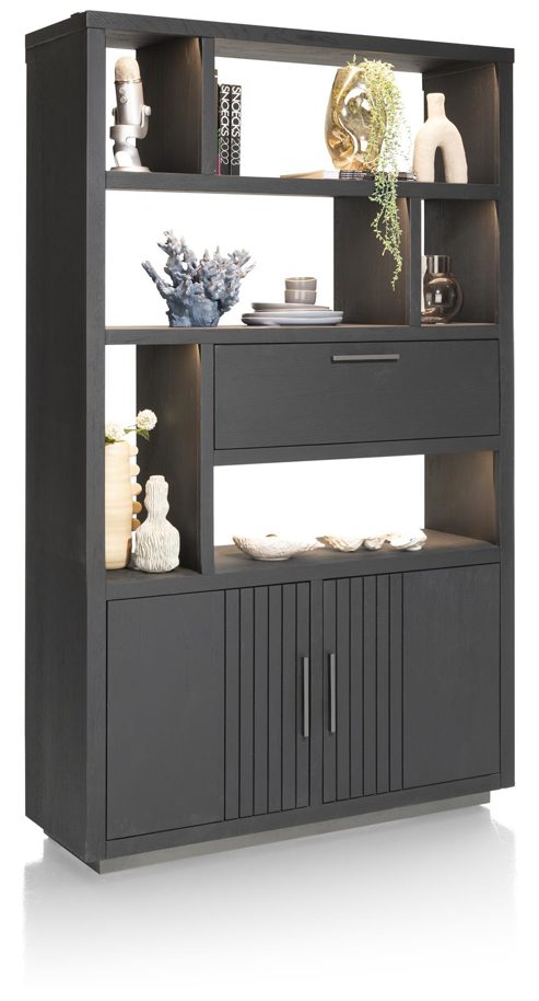 Das atemberaubende Castle Black-Finish verleiht diesem Schrank eine zeitlose Eleganz, die sich nahtlos in jedes Interieur einfügt. Darüber hinaus ist der Schrank mit LED-Beleuchtung ausgestattet, die für eine subtile, aber dennoch effektvolle Atmosphäre in Ihrem Raum sorgt und gleichzeitig eine angenehme Beleuchtung bietet.