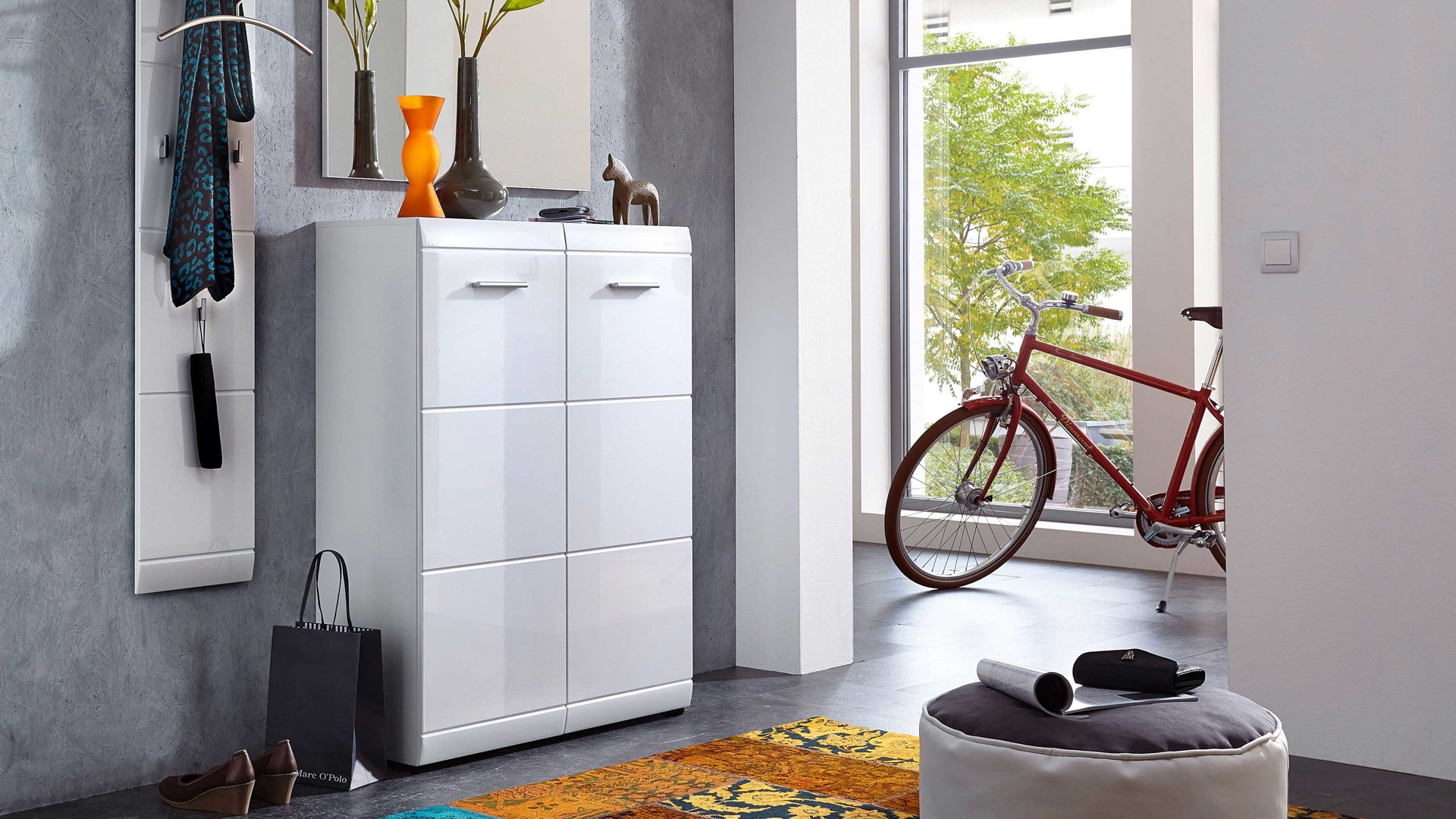 Außerdem begeistert das Garderobenmöbel aus MDF mit weißen Hochglanzfronten und weißen Kunststoffoberflächen. Optisches Highlight ist zum einen die auffällige Rillenfräsung, zum anderen sind es die Designgriffe, die sich farblich von den Türen abheben. Stellen Sie den Schuhschrank, der insgesamt ca. 89 x 120 x 37 cm (BxHxT) groß ist, direkt in Ihre Garderobe oder Ihren Eingangsbereich. Weitere Möbel der Serie Adana erhalten Sie hier im Online Shop.