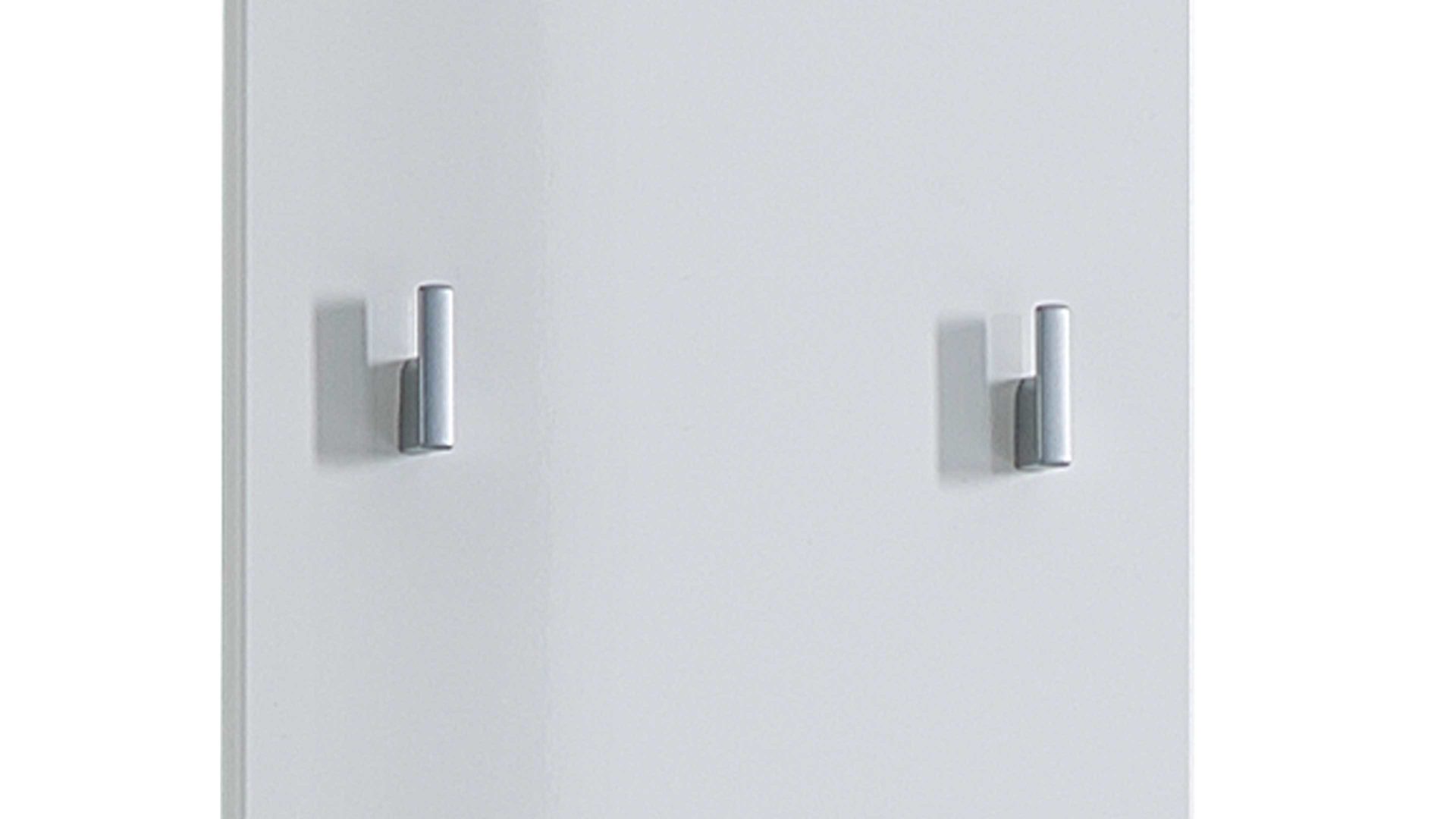 Verleihen Sie mit diesem Garderobenpaneel Ihrem Eingangsbereich eine einladende Atmosphäre und schaffen Sie gleichzeitig eine stilvolle Möglichkeit zur ordentlichen Kleideraufbewahrung. Die Wandgarderobe präsentiert sich mit einem Korpus aus MDF mit weißer Hochglanzoberfläche und auffällig schöner Rillenfräsung. Dabei bieten der Ablageboden, die Kleiderstange sowie drei Kleiderhaken ausreichend Platz für Ihre Kleidung. Jacken, Schals und Mäntel hängen Sie knitterfrei auf, während Sie Hüte und Mützen auf der oberen Ablagefläche des Dielenmöbels verstauen.