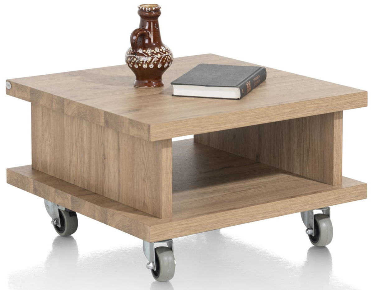 Dank der praktischen Rollen ist der Delmonte mobil und flexibel einsetzbar – ideal als Beistelltisch neben dem Sofa oder als freistehendes Element. Unter der stilvollen Tischplatte befindet sich ein offenes Fach, das zusätzlichen Stauraum bietet. Die Konstruktion aus Primo Laminato (HPL) in der Farbe Eiche Natur ist leicht, robust und pflegeleicht. Dieses Material sieht aus wie Holz, ist jedoch kratzfest und perfekt für den täglichen Gebrauch.