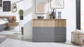manhattengrauer Lack & Wildeiche - fünf Schubladen, Breite ca. 134 cm