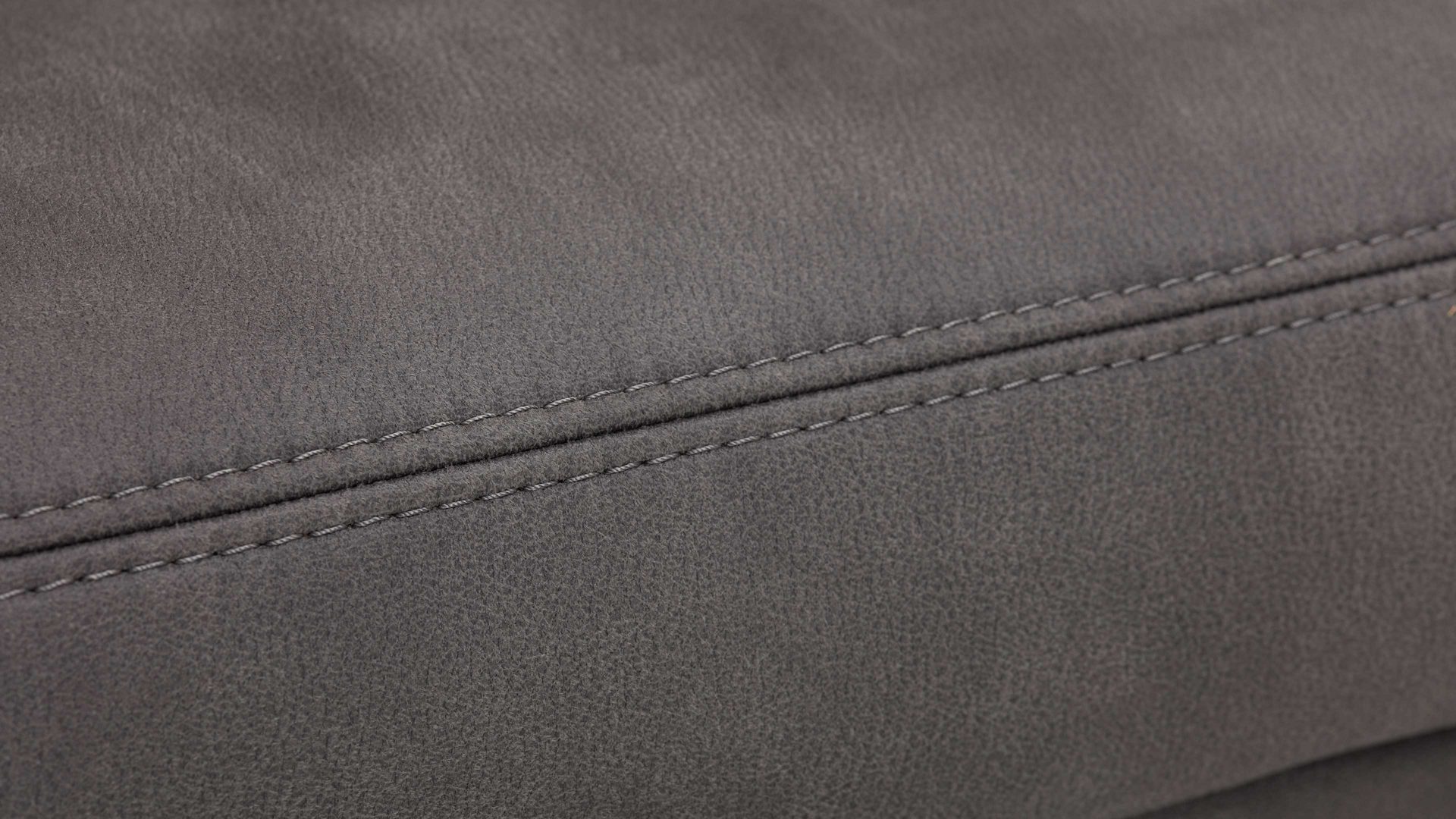 Mit den stabilen Aluminiumfüßen und dem anthrazitfarbenen Stoffbezug strahlt dieser Dreisitzer moderne Eleganz aus. Die Materialien und Farben harmonieren hervorragend miteinander. Dank ihrer Zeitlosigkeit fügen sie sich in verschiedene Einrichtungskonzepte absolut stimmig ein. Die Maße des 3-Sitzer-Sofas belaufen sich auf ca. 185 x 90 x 85 cm (LxHxT), bei einer Sitzhöhe von ca. 46 cm und einer Sitztiefe von ca. 53 cm.
