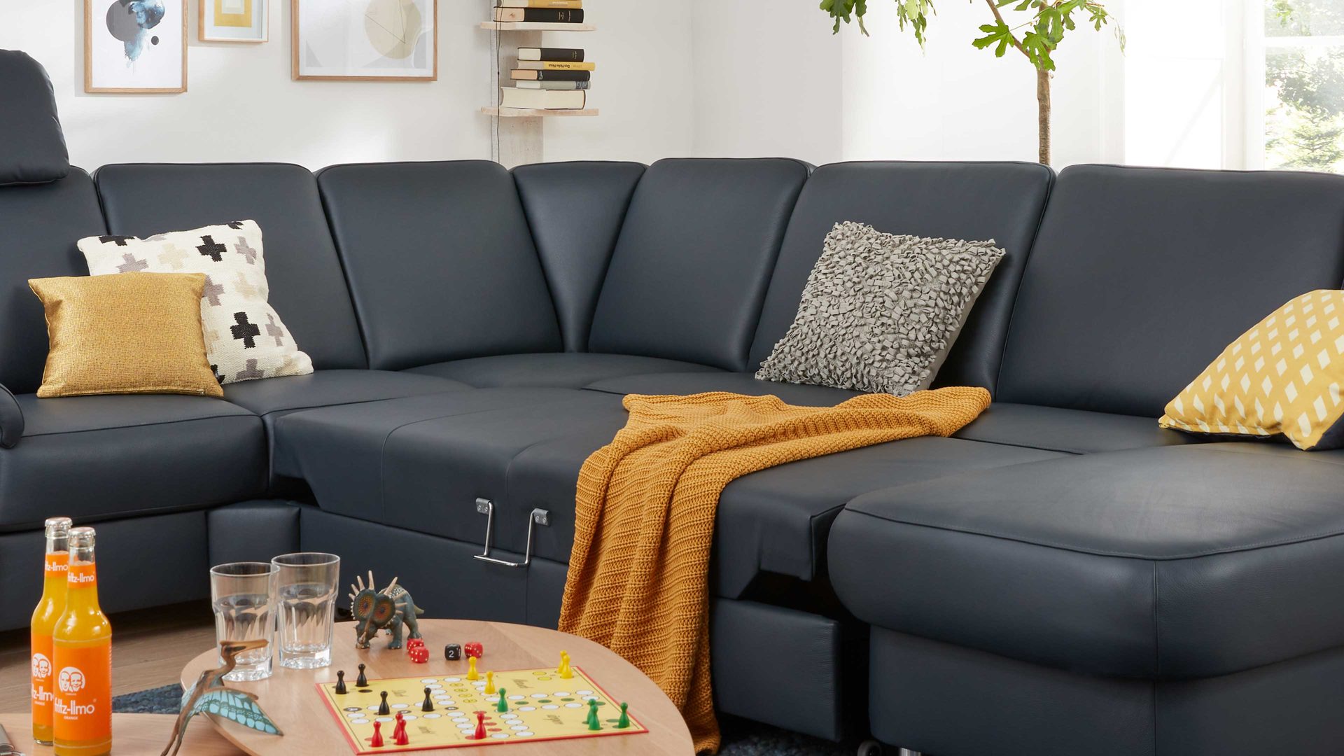 Die Bettfunktion A ist eine Mehrpreis-Ergänzung für die 2,5-Sitzer ohne Armlehnen aus dem Modulmaster-Programm MM-PN1059. Sie gibt Ihnen die Gelegenheit, das jeweilige Sofa über den verchromten Metallgriff nach vorne auszuziehen und die Sitzfläche um ca. 112 x 123 cm (LxB) zu erweitern. Die Liegefläche der Querschläfer-Bettfunktion ist mit Nesselstoff bezogen, gegen Mehrpreis allerdings auch im Originalstoff lieferbar.