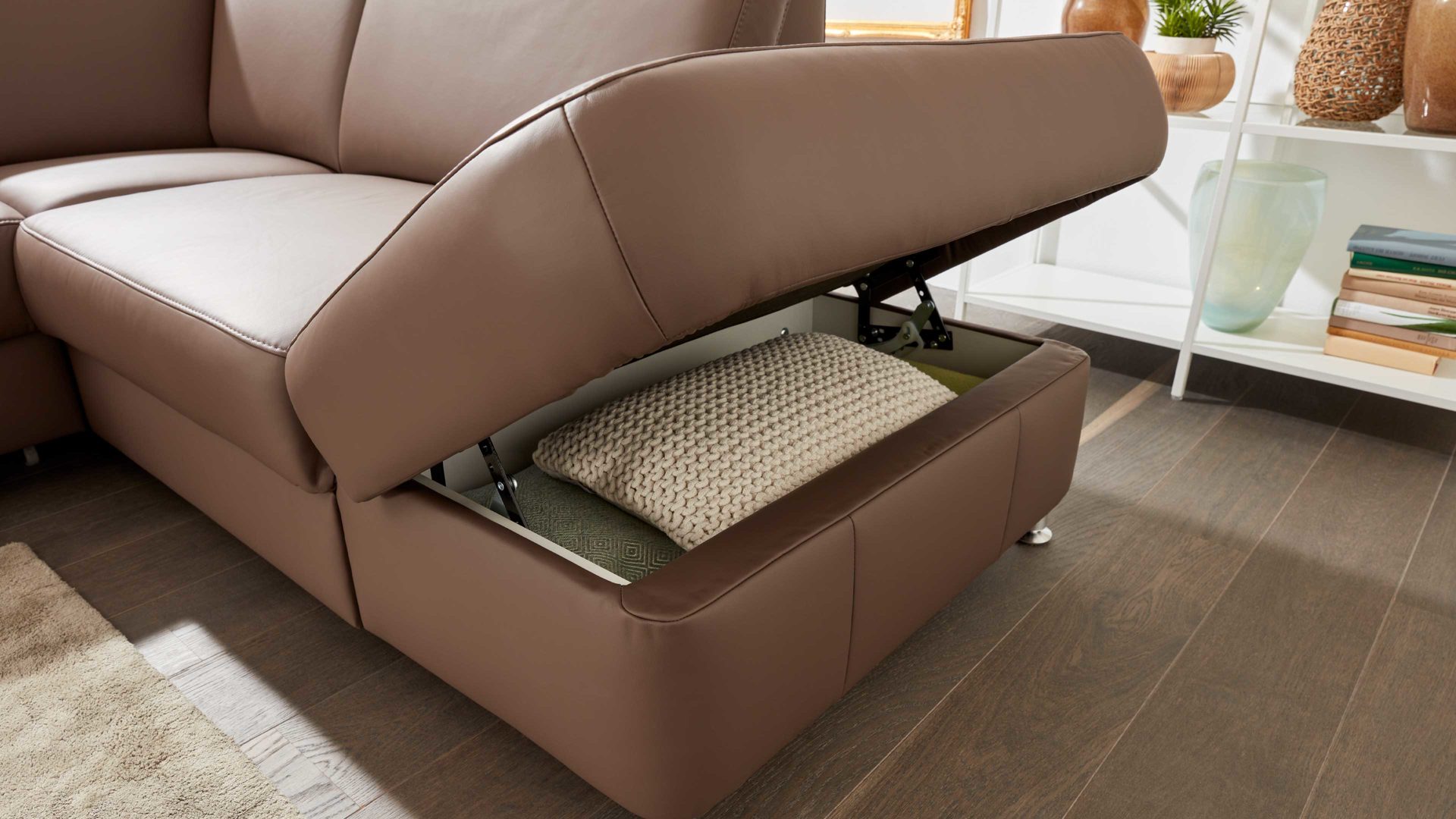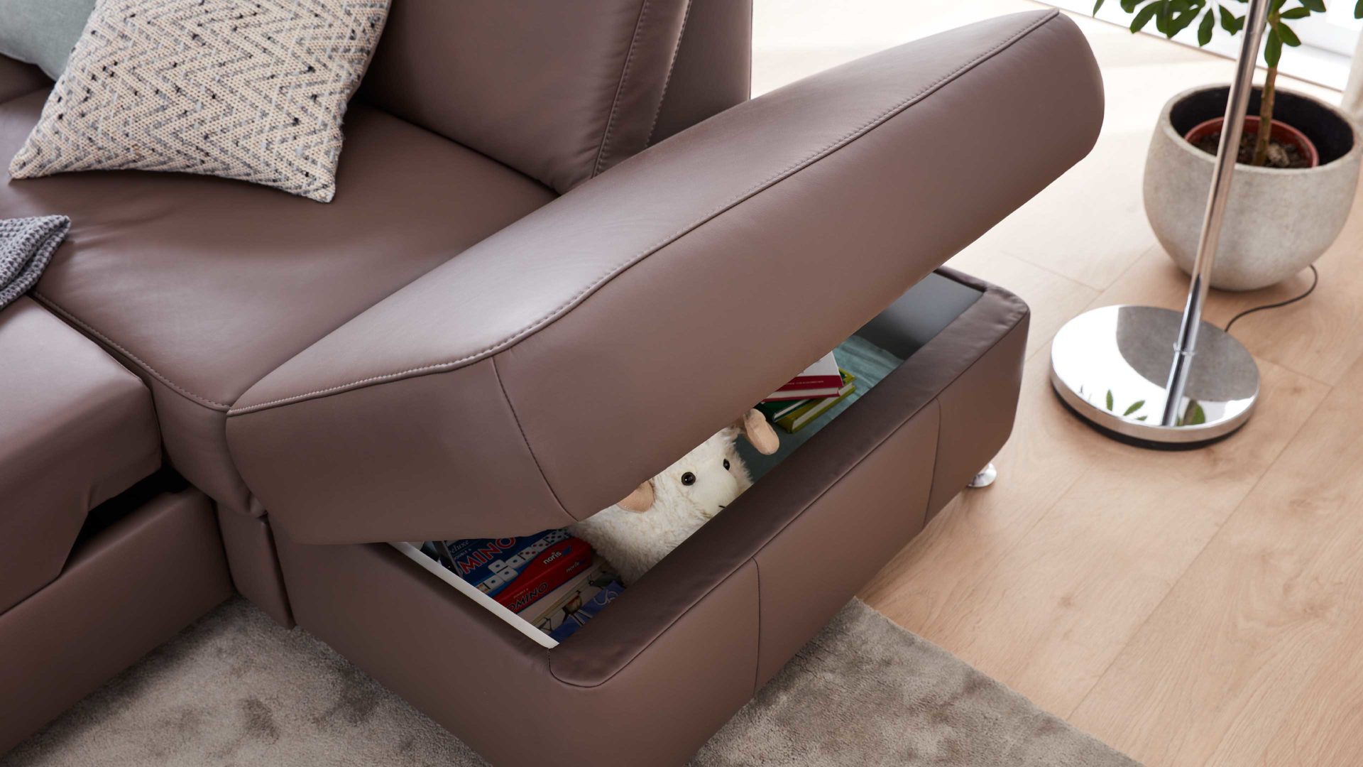 Sie profitieren von einer großen Auswahl an attraktiven Bezügen. Zudem wählen Sie zwischen 16 Fußausführungen und drei Armlehnvarianten. Zu den funktionalen Highlights der individuell planbaren Serie gehören die drei Sitzqualitäten: Erhältlich sind Kaltschaum, Federkern sowie gegen Mehrpreis auch Boxspring. Darüber hinaus können Sie die Polstermöbel optional mit manuellen oder motorischen Funktionen erweitern.