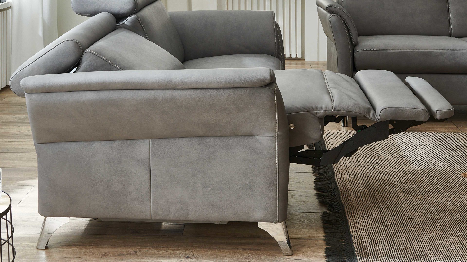 Über einen Motor und mittels des innenliegenden Bedienfelds lassen sich Rückenlehne, Sitz und Fußstütze des jeweiligen Polstermöbels auf Knopfdruck stufenlos verstellen. In der Endposition können Sie Ihre Beine komplett ausstrecken und beim Fernsehen oder Lesen auf dem Sofa besonders entspannt sitzen.