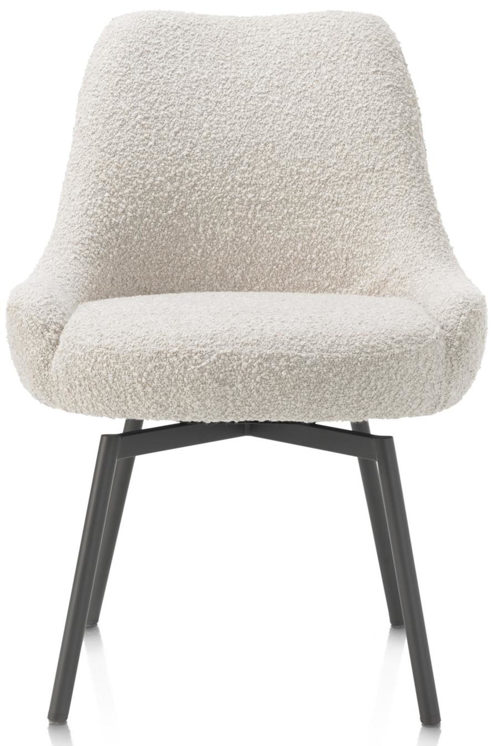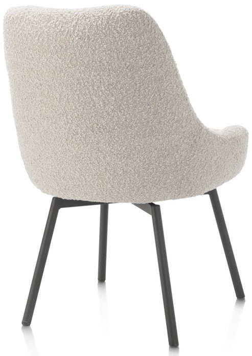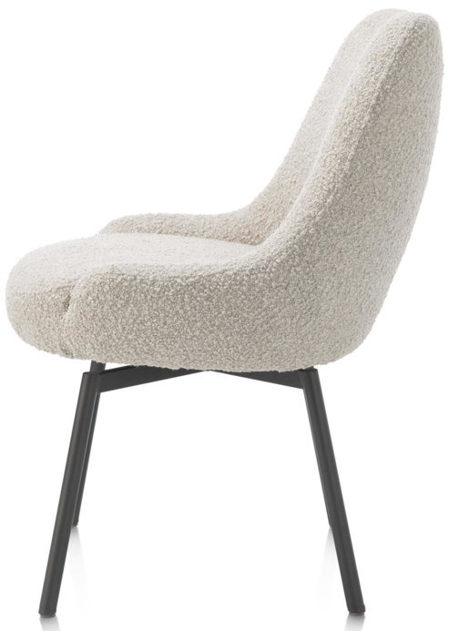 Der Stuhl Rocco von Henders & Hazel kombiniert modernes Design mit hohem Komfort. Ausgestattet mit einem Taschenfederkern und einem drehbaren Sitz bietet er optimalen Sitzkomfort. Der weiche Bouclé-Stoff ist in den eleganten Farben Creme sowie Leber erhältlich. Die breite Rückenlehne sorgt für zusätzlichen Halt, während die vier stabilen Metallbeine in Graphit dem Stuhl eine moderne Note verleihen. Alternativ sind auch Holzfüße verfügbar. Der Rocco ist zudem als Armlehnenstuhl erhältlich und eignet sich ideal für verschiedene Räume – vom Esszimmer bis zum Wohnzimmer.