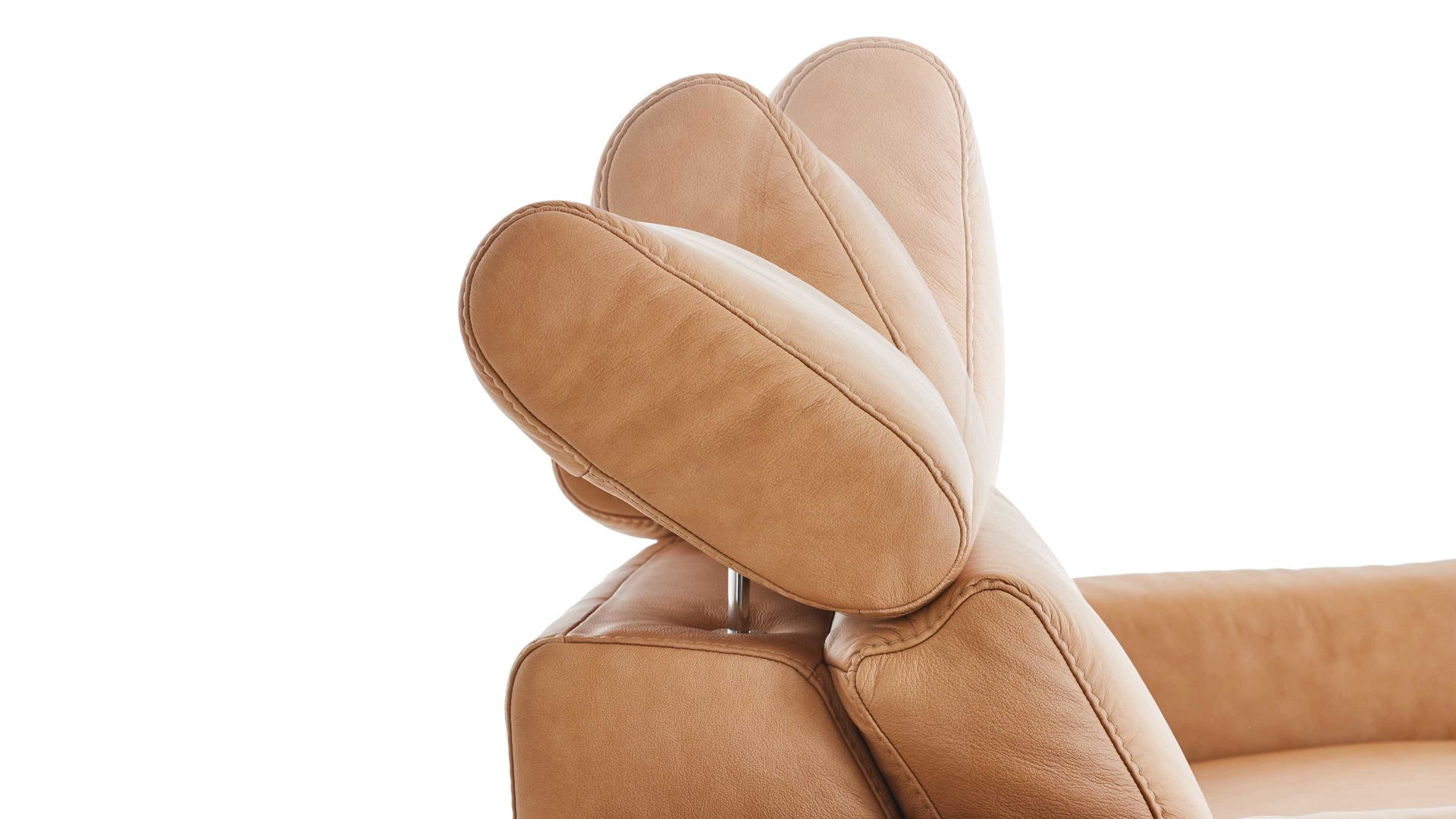 Die manuelle Kopfteilverstellung ist ein Funktions-Mehrpreis für die Sofas und Sessel aus dem hochwertigen Polsterprogramm OrthoSedis 6.0. Mittels Rasterbeschlag und Rückholfeder können Sie das Kopfteil verstellen und dessen Position stets an Ihre aktuellen Bedürfnisse anpassen.