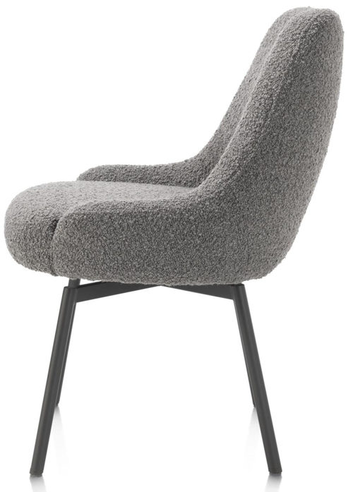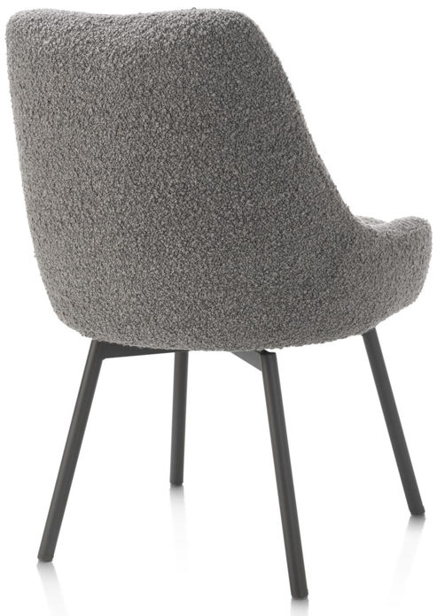 Der Stuhl Rocco von Henders & Hazel kombiniert modernes Design mit hohem Komfort. Ausgestattet mit einem Taschenfederkern und einem drehbaren Sitz bietet er optimalen Sitzkomfort. Der weiche Bouclé-Stoff ist in den eleganten Farben Creme sowie Leber erhältlich. Die breite Rückenlehne sorgt für zusätzlichen Halt, während die vier stabilen Metallbeine in Graphit dem Stuhl eine moderne Note verleihen. Alternativ sind auch Holzfüße verfügbar. Der Rocco ist zudem als Armlehnenstuhl erhältlich und eignet sich ideal für verschiedene Räume – vom Esszimmer bis zum Wohnzimmer.