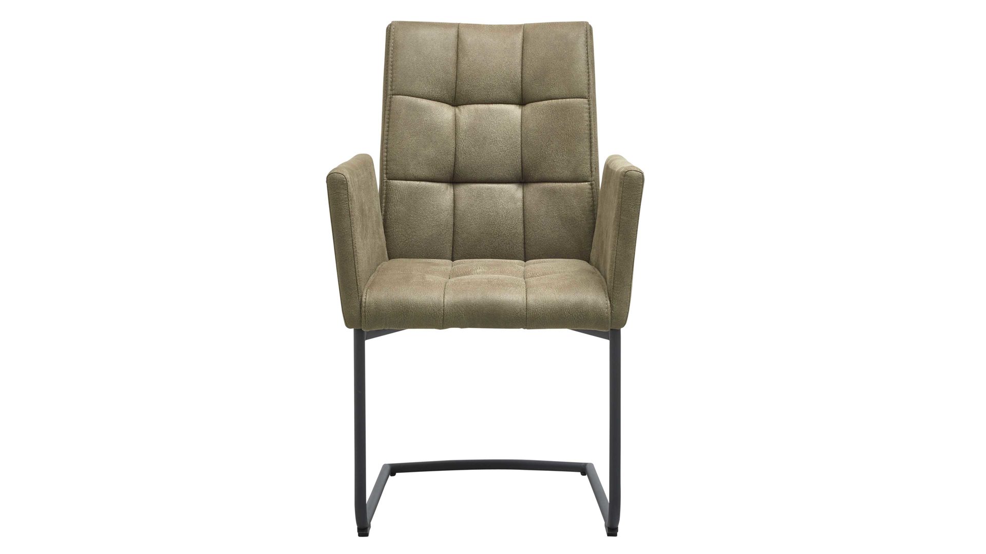 Der Armlehn-Schwingstuhl aus der Interliving Esszimmer Serie 5104 ist das perfekte Sitzmöbel für alle, die modernes Design, hochwertigen Komfort und flexible Bewegungsfreiheit miteinander verbinden möchten. Mit seinem farngrünen Mikrofaserbezug im Wildlederlook und der dekorativen Quadratsteppung bringt der Freischwingstuhl eine frische, wohnliche Note in deinen Essbereich.