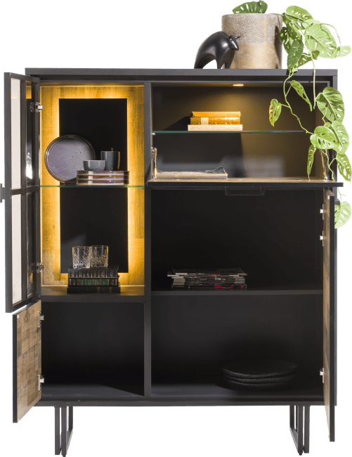 Das 2-Türen Highboard Avalon 42488DRI des Herstellers Henders & Hazel punktet nicht nur optisch, sondern auch qualitativ auf ganzer Linie. Durch ein pflegeleichtes und kratzfestes Material garantiert Ihnen der Hersteller eine Langlebigkeit. Sie erhalten das Möbelstück in der Ausführung Primo Laminato driftwood. Die Fronten- sowie Seitenteile sind in Metall off black gehalten und sorgen für eine angenehme Atmosphäre in Ihrem Wohn- oder Esszimmer. Der elegante Solist bietet ausreichend Stauraum für Akten oder andere Dinge. Ihren Vorstellungen und Wünschen werden keine Grenzen gesetzt. Passend hierzu finden Sie weitere Möbel der Serie Avalon in unserem Online-Shop. Stellen Sie sich mit verschiedenen Elementen Ihre ideale Wohnwand zusammen.