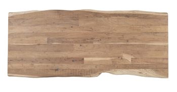 Das Gestell aus anthrazitfarbenem Metall bietet einen ansprechenden Kontrast zum warmen Holz und sorgt für eine stabile und langlebige Konstruktion. Mit einer Breite von ca. 210 cm, einer Höhe von ca. 77 cm und einer Tiefe von ca. 90-100 cm bietet der Tisch ausreichend Platz für Familienessen, gemütliche Abende oder auch als Arbeitsfläche. Die naturbelassenen Kanten variieren in der Breite, was jedem Exemplar einen individuellen Charakter verleiht.