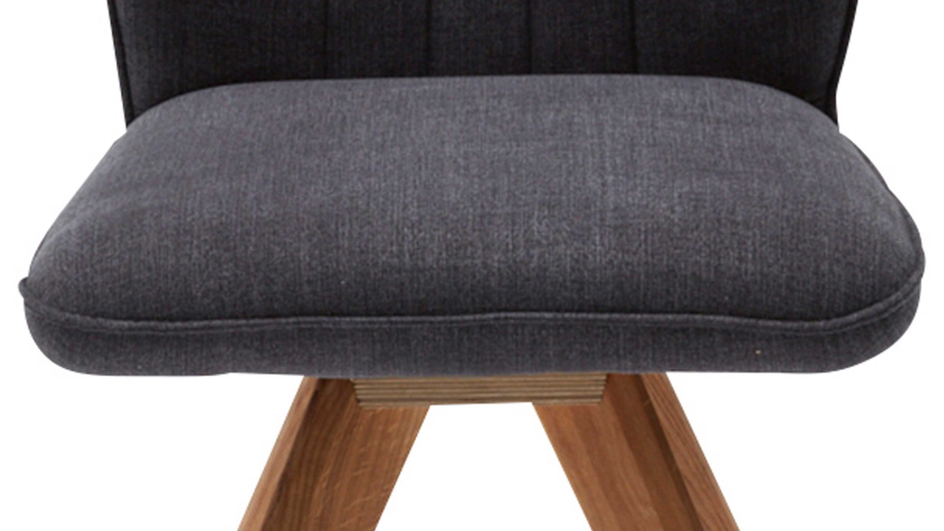 Der Polsterstuhl aus der Interliving Esszimmer Serie 5102 kombiniert modernen Komfort mit natürlicher Materialästhetik. Der graphitfarbene Webstoffbezug verleiht dem Stuhl eine warme, wohnliche Ausstrahlung, während das Stativgestell aus massiver Wildeiche einen stilvollen Kontrast setzt und für hohe Stabilität sorgt. Feine Steppnähte in der Rückenlehne unterstreichen die hochwertige Verarbeitung und geben dem Stuhl eine elegante, handwerkliche Note.