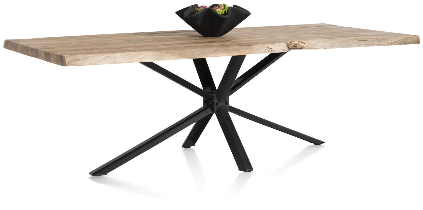 Der Esstisch "Living Nr. 45770" von Henders & Hazel ist ein Meisterstück modernen Designs, das Natürlichkeit und industriellen Chic auf einzigartige Weise miteinander vereint. Mit seiner großzügigen Breite von etwa 240 cm bietet er bequem Platz für gesellige Runden und ausgedehnte Mahlzeiten. Die Tischhöhe von ca. 77 cm und eine Tiefe zwischen 90 und 100 cm sorgen für eine angenehme und ergonomische Nutzung.