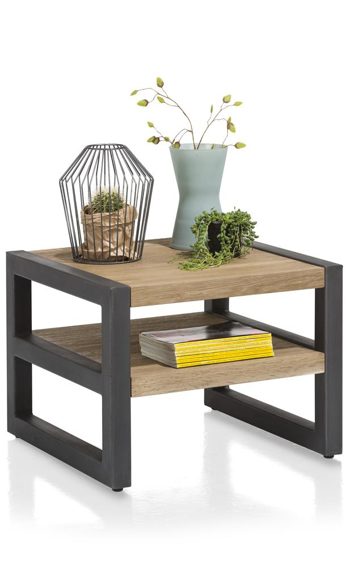 Der Ecktisch Brooklyn 37151RWB von Habufa ist eine praktische Ergänzung für Ihr Zuhause. Der Tisch wird aus massiver Eiche gefertigt, Metallapplikationen geben dem letzten Schliff und setzen einen tollen Akzent. Die Oberfläche des Holzes ist bewusst natürlich belassen, Wachstumsrisse, Astlöcher und Unebenheiten tragen zur Charakterbildung bei und machen jedes Möbelstück aus der Habufa Brooklyn Reihe zu einem Unikat. Der zweite Einlegeboden bietet praktischen Stauraum für Zeitungen oder Fernbedienungen. Manche Stellen im Holz werden mit schwarzem Spachtel gefüllt, der optimal mit den Metallapplikationen harmoniert.
