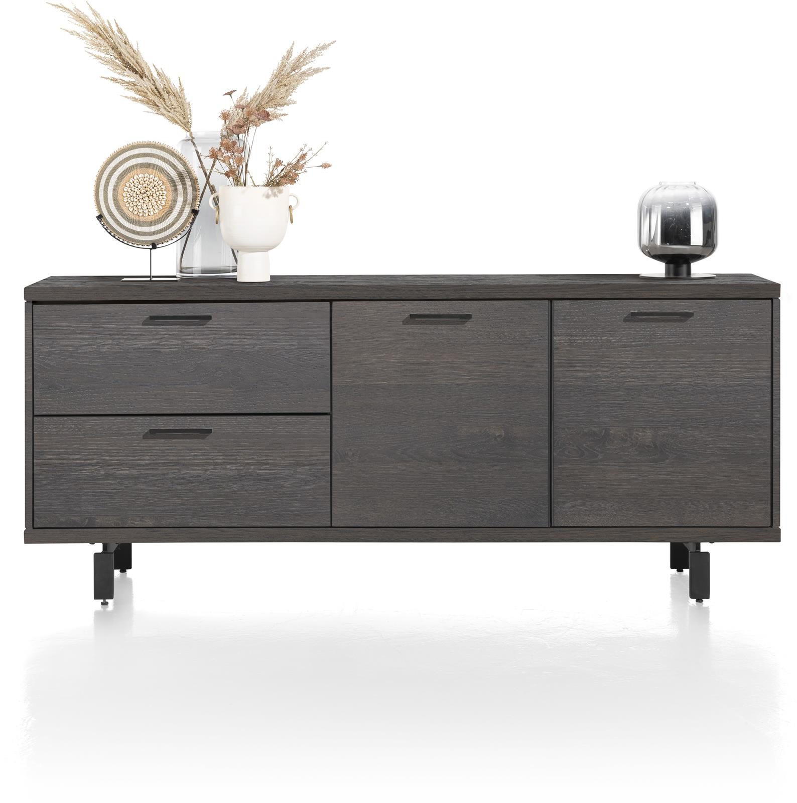 Das Besondere an dieser Vitrine sind die durchdachten Details, wie die Metallakzente, die die Türen und Schubladenfronten umrahmen. Diese Akzente, in der Farbe Castle Anthrazit, verleihen dem Möbelstück einen modernen, fast skulpturalen Charakter. Die Türen und Schubladen sind mit einem Soft-Close-System ausgestattet, das für sanftes und leises Schließen sorgt, und tragen so zum Komfort und zur Langlebigkeit bei.