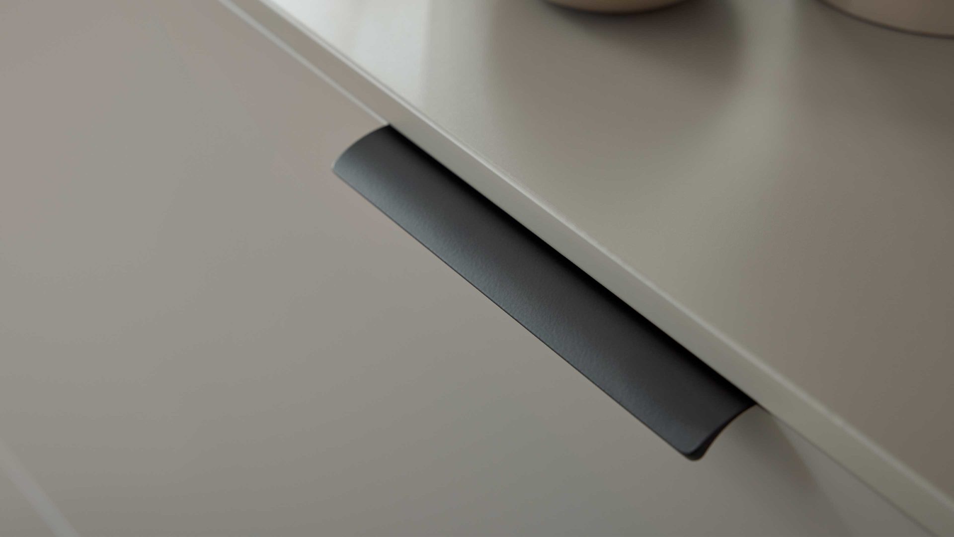 Die Kombination aus graubeigem Mattlack und mattschwarzen Metallgriffen verleiht dem Flurschrank einen edlen, zeitgemäßen Look, der sich harmonisch in verschiedenste Wohnstile einfügt – ob als Einzelstück oder als Teil eines abgestimmten Garderobenmöbel-Sets.