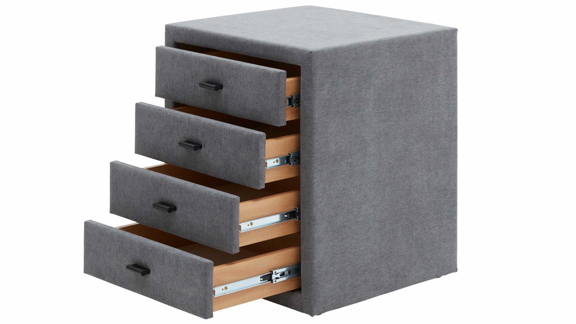 Die Nachtkommode bietet vier Schubladen, die reichlich Stauraum für alles Wichtige am Bett bieten – von deiner Abendlektüre über Brille und Notizbuch bis hin zu kleinen Alltagshelfern.
