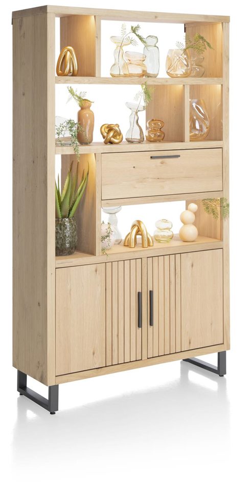Die integrierte LED-Beleuchtung setzt Ihre Lieblingsstücke gekonnt in Szene und schafft eine einladende Atmosphäre. Ob im Wohnzimmer, Esszimmer oder Schlafzimmer – der Schrank Pavie Nr. 46517 von Henders und Hazel ist mehr als nur ein Möbelstück; er ist eine Verkörperung von Stil, Komfort und Funktionalität für Ihr Zuhause.
