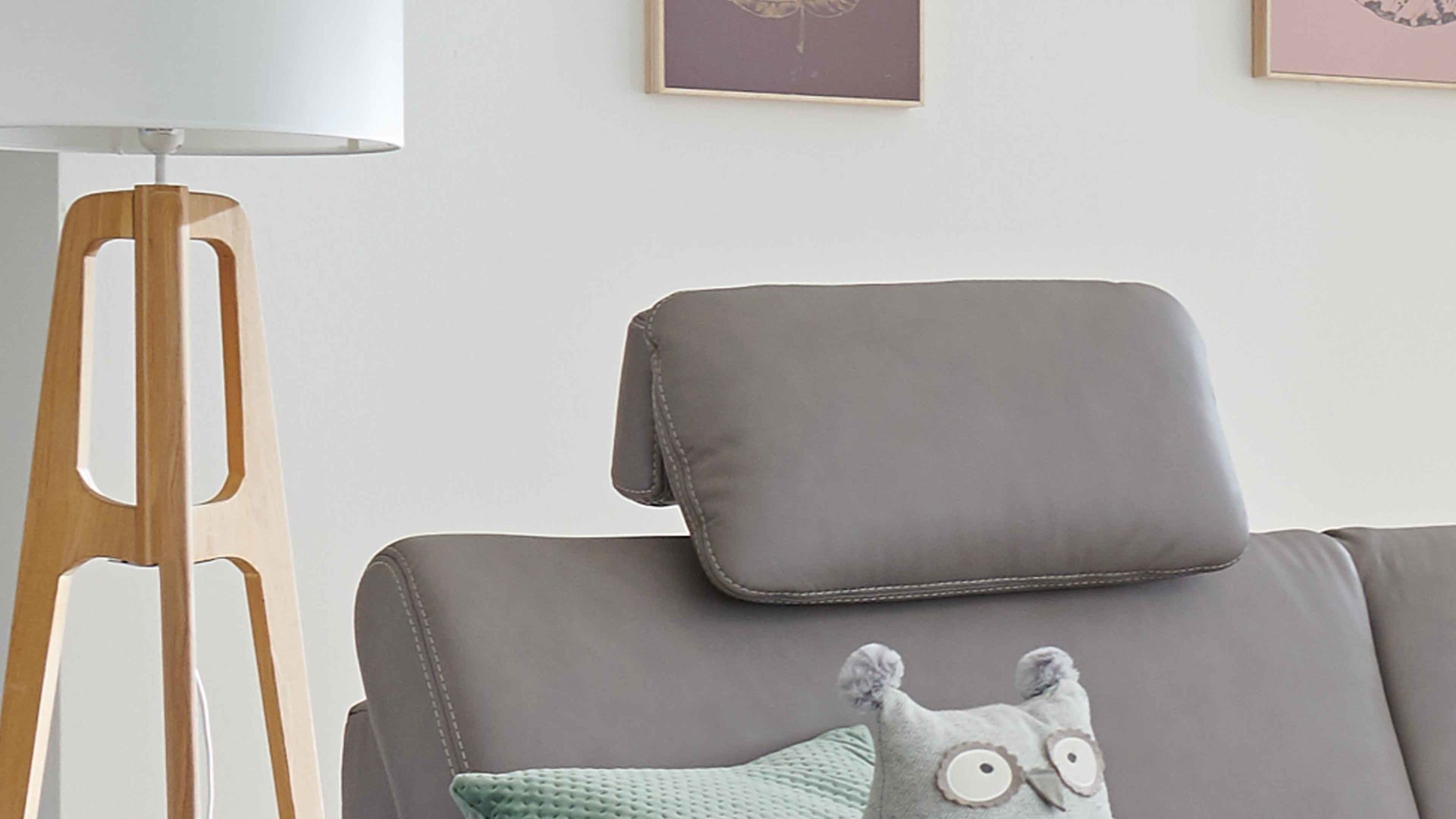 Die Premium-Kopfstütze PKS fungiert als Mehrpreis-Zubehör für diverse Elemente aus der Modulmaster-Polsterserie MM-PN1102. Sie ist mit granitfarben pigmentiertem Glattleder bezogen und mit einer Kopfstützenvorrichtung aus verchromtem Metall ausgestattet.