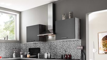 die elica Dunsthaube MISSY IX A60 mit der Energieeffizienzklasse D (Spektrum A+++ bis D) sowie eine hochwertige Edelstahl-Einbauspüle
