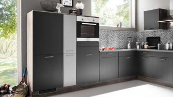 Das Highlight der individuell planbaren Küche ist die halbhohe Hochschranklösung. Optional können Sie eine Armatur für die Einbauspüle und eine Geschirrspülmaschine für eine bequemere Geschirrreinigung ergänzen. Die hochwertige Einbauküche ist Made in Germany.