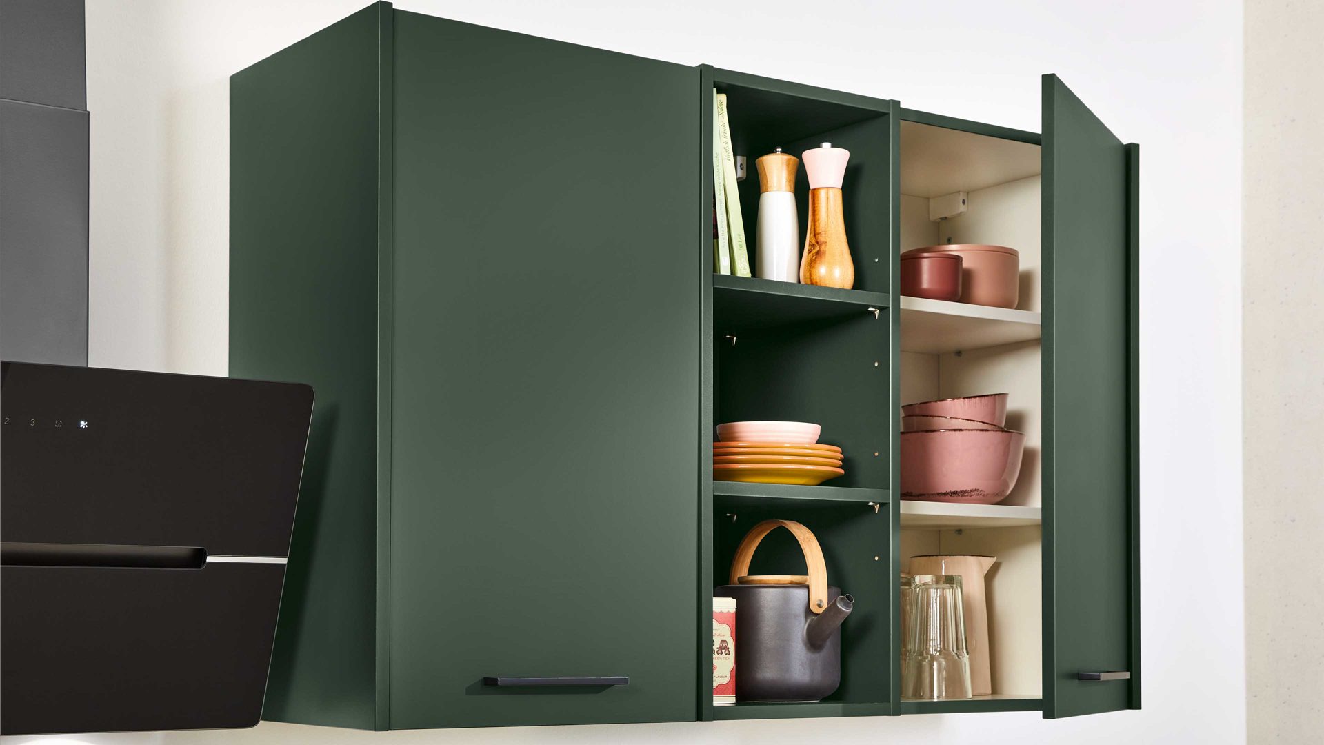 Das Tellerregal sowie weitere dargestellte Einrichtungsgegenstände sind separat gegen Mehrpreis bestellbar.