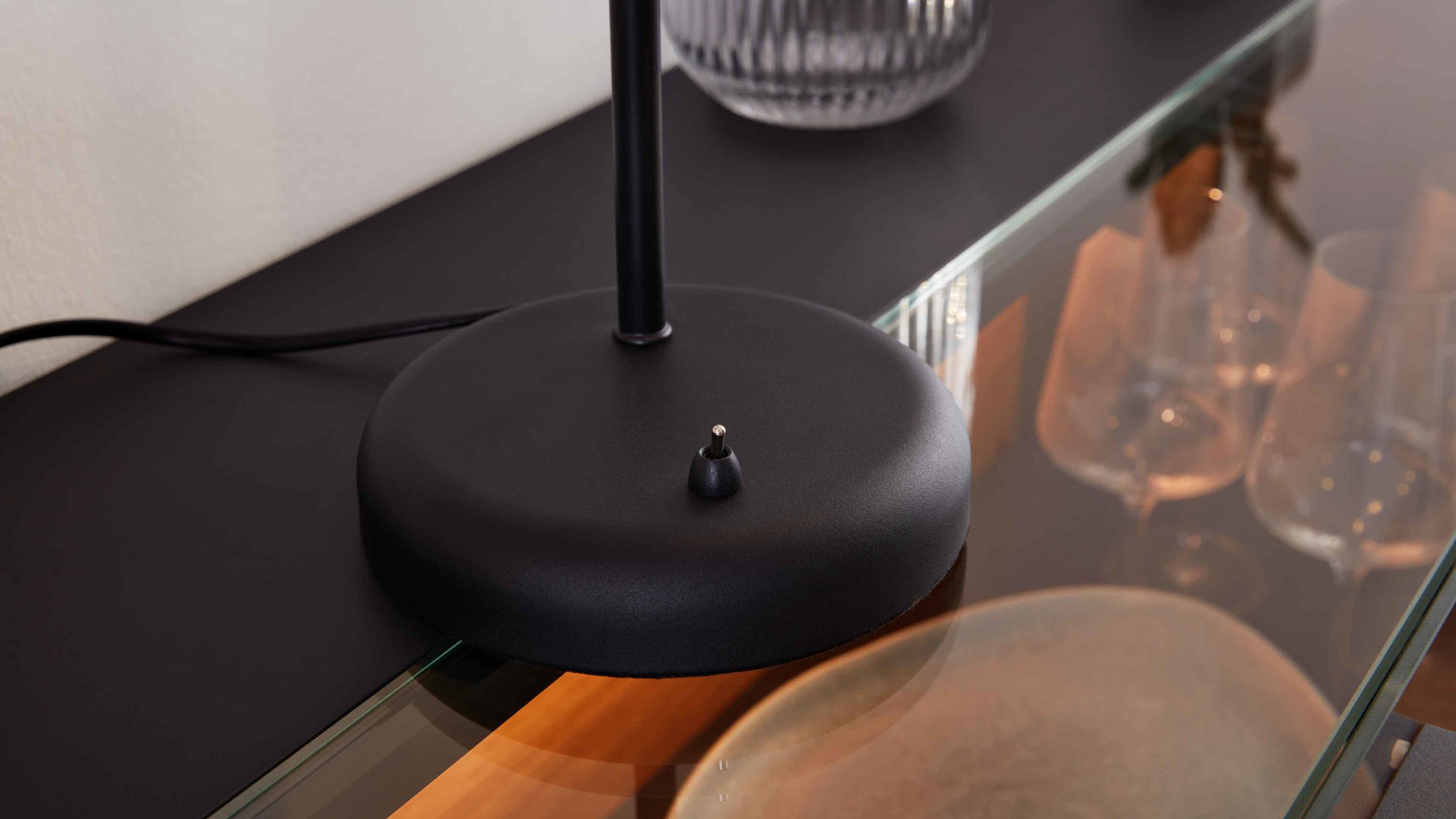 Mit Maßen von ca. 20 x 43 cm (BxH) und einem Durchmesser von ca. 15 cm ist die Lampe kompakt und platzsparend, dabei dennoch ausdrucksstark. Der praktische Kippschalter am Lampenfuß ermöglicht bequemes An- und Ausschalten – perfekt für Alltag und Abendstimmung.