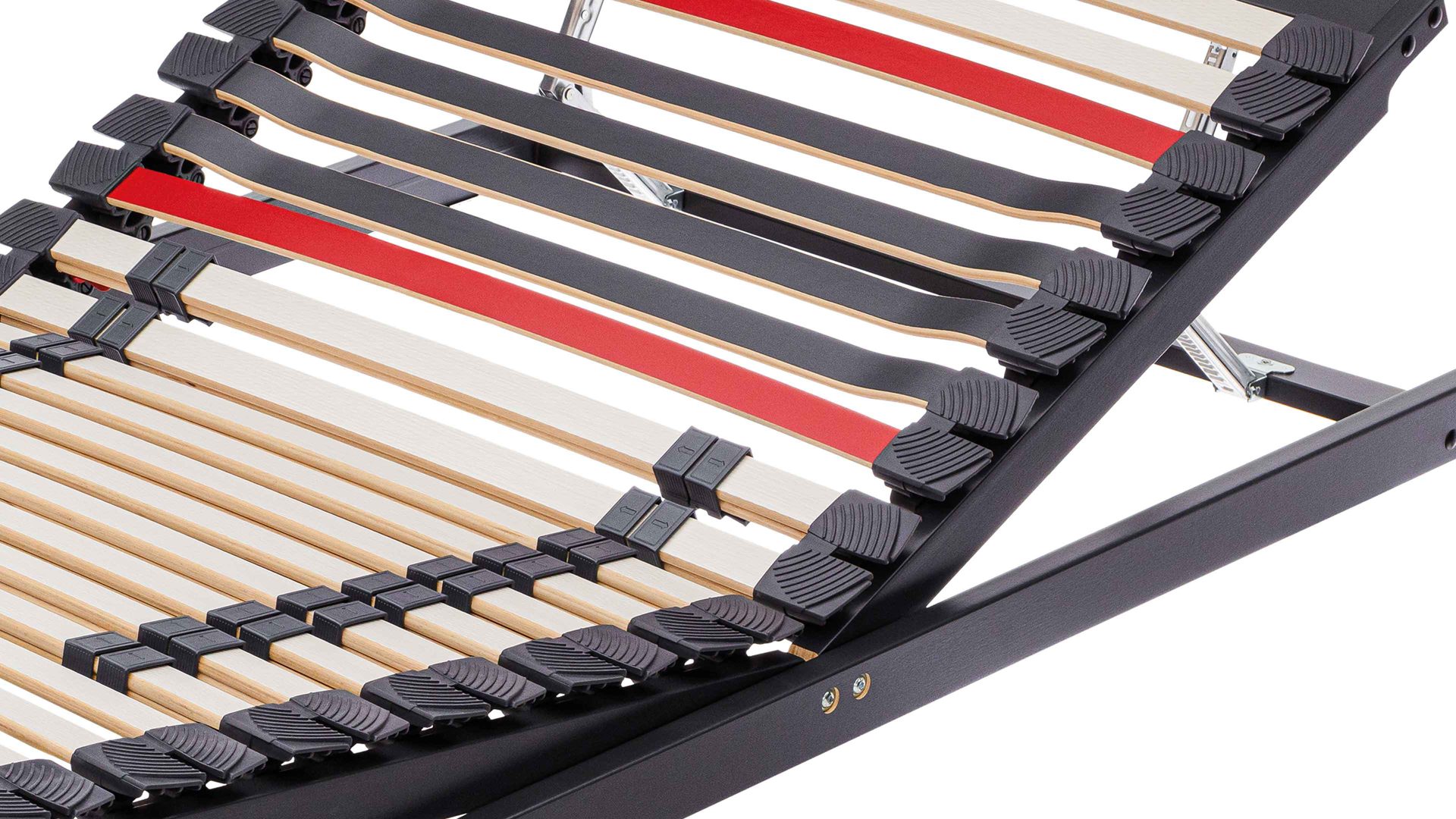 Die elastischen Federleisten sind in langlebigen Hightech-Kappen gelagert, die für dauerhafte Elastizität und Geräuschfreiheit sorgen. Verstärkte Querleisten mit Winkelsicherung sowie hochfeste Gelenkschrauben aus Stahlgüte erhöhen die Stabilität zusätzlich – auch bei höherer Belastung.
