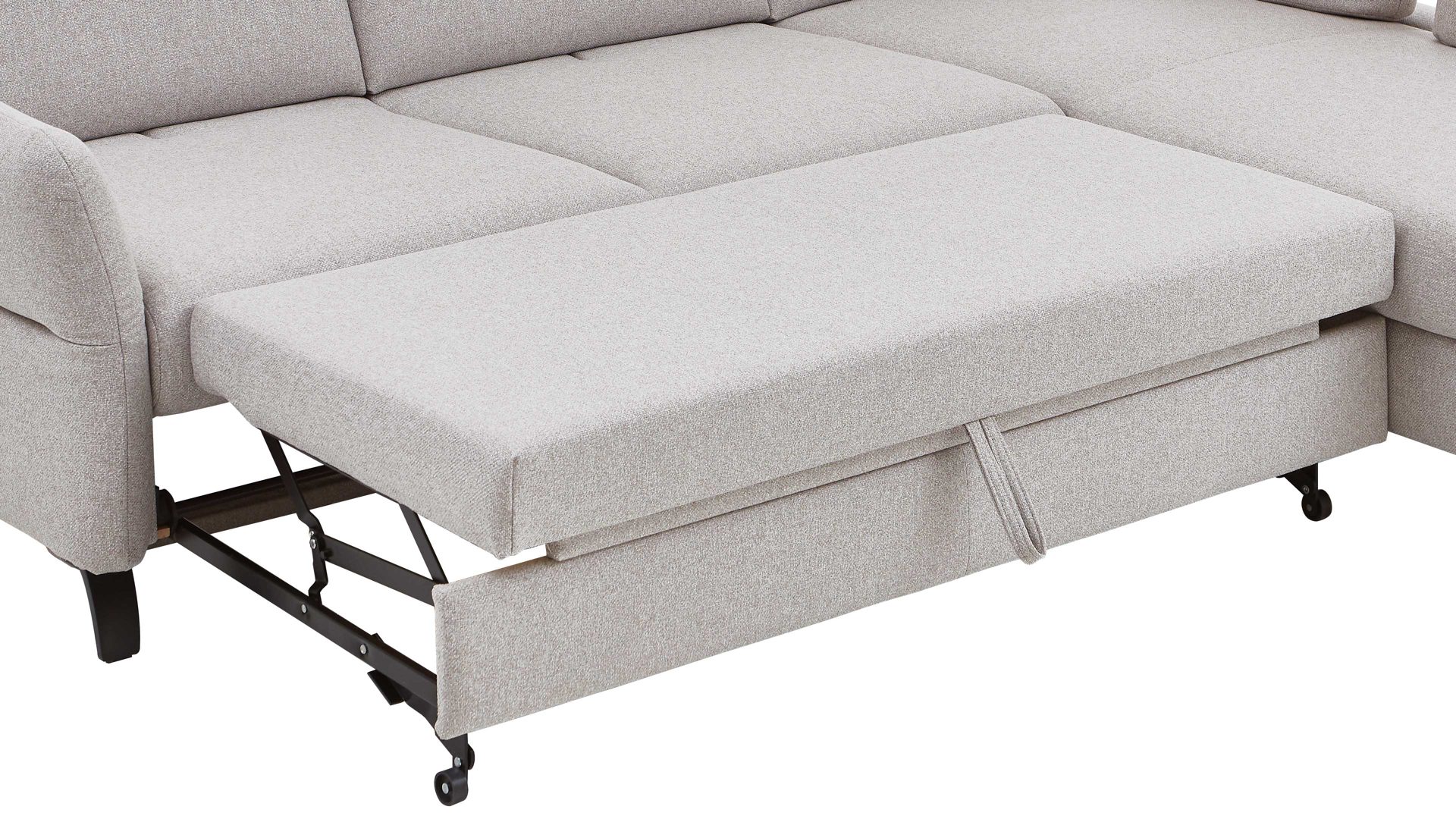 Die manuelle Querschläferfunktion aus dem Polsterprogramm Tiamo Plus ist die perfekte Ergänzung für Ihre Polsterecke. Diese Funktion ermöglicht es Ihnen, die Sitzfläche leicht nach oben und nach vorn auszuziehen, um eine bequeme Liegefläche von ca. 145 x 125 cm (L/BxT) zu erhalten, die mit Matratzenbezug ausgestattet ist.