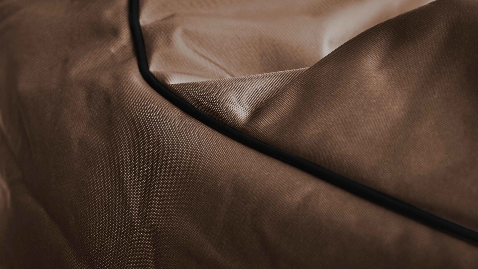 Durch seine dicht gewebte Struktur ist der Stoff besonders widerstandsfähig, unempfindlich gegenüber Nässe und leicht zu reinigen. Eine zusätzlich aufgebrachte PVC-Beschichtung auf der Innenseite des Stoffes macht scuba® zudem extrem robust und reißfest. Zugleich ist er angenehm weich und bequem. Der schwer entflammbare Bezug macht den Sessel zum perfekten Begleiter für Garten, Terrasse und Balkon. Ist die Füllung entfernt, lässt sich der Bezug bei 40 Grad im Schonwaschgang waschen.