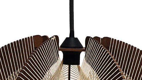 naturfarbene Hanfschnur, dunkel holzfarbenes MDF und mattschwarzes Metall