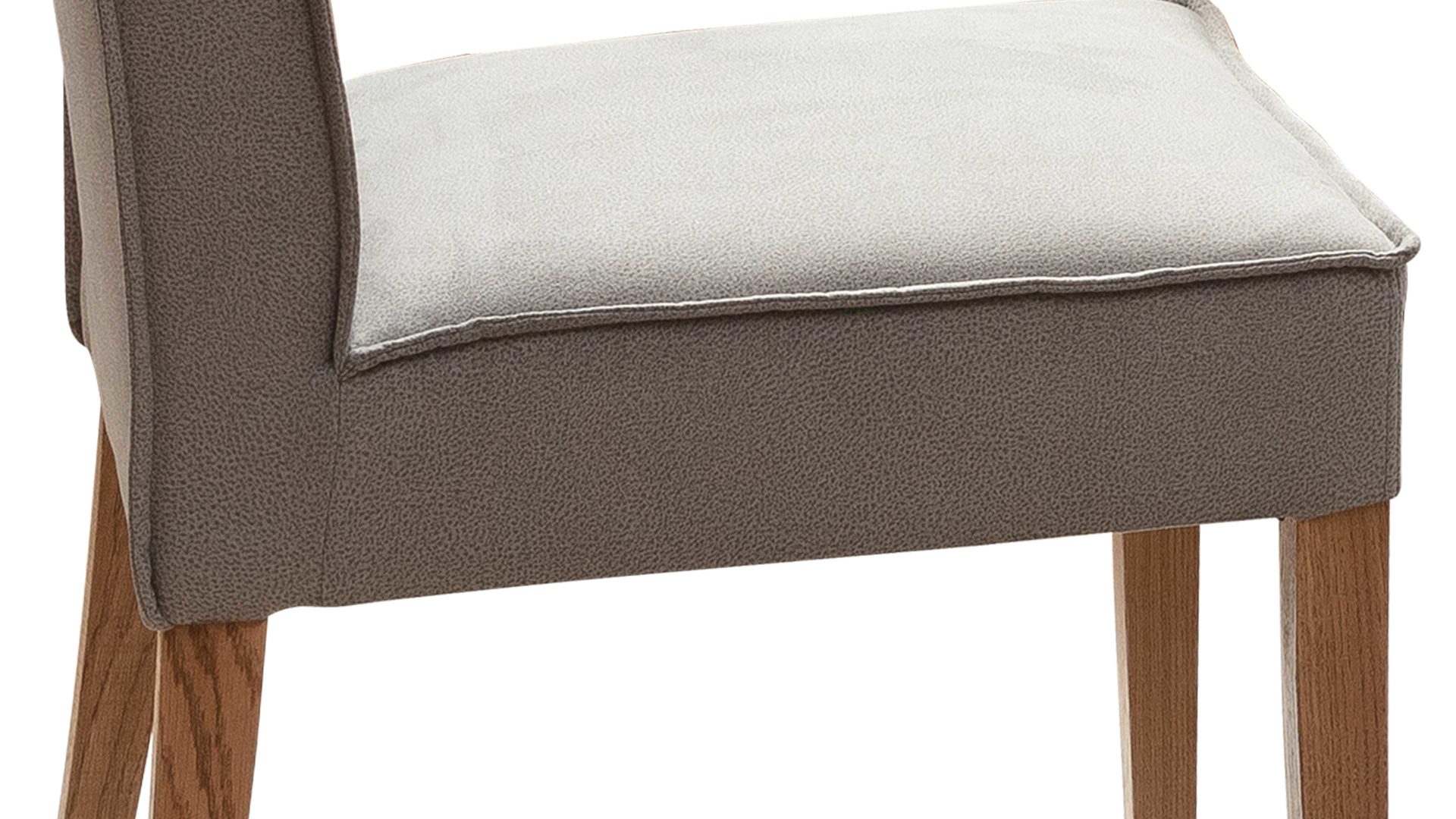 Der Polsterstuhl Lagos begeistert mit den hochwertigen Materialien, der erstklassigen Verarbeitungsqualität, dem stilvollen Design und dem hohen Komfort. Als stabile Basis fungiert ein lackiertes Eichenholzgestell, das natürlichen, warmen Charme verströmt und hervorragend mit dem hellgrauen Stoffbezug harmoniert. In Kombination sorgen die Materialien und Farben für eine moderne und gemütliche Ausstrahlung. Einen gelungenen Akzent setzt die umlaufende Ledernaht.