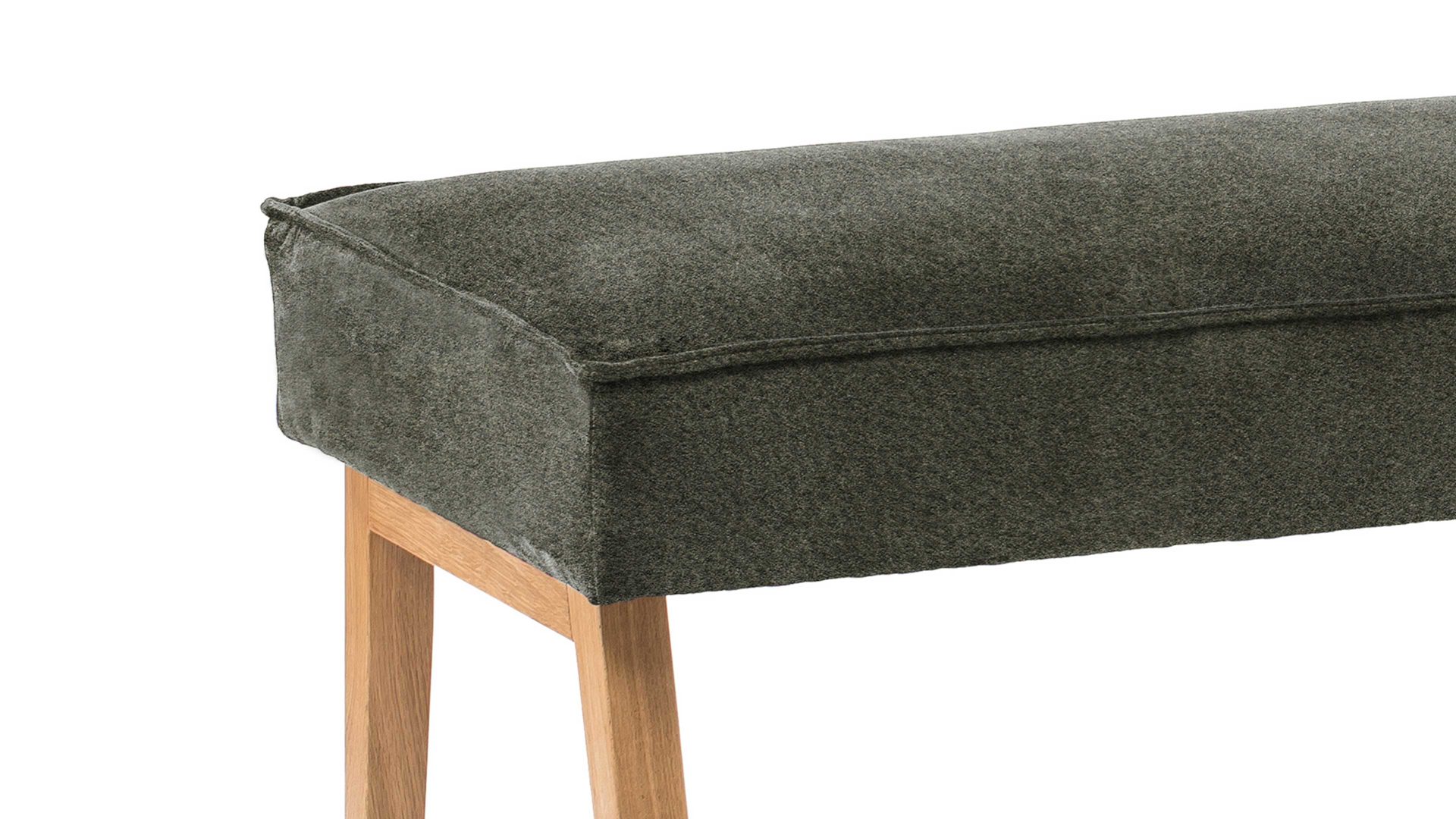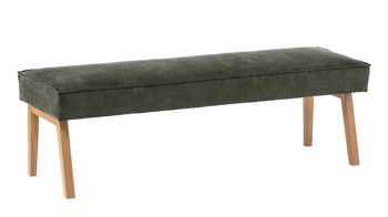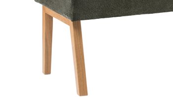 Die Polsterbank Lagos begeistert mit den hochwertigen Materialien, der erstklassigen Verarbeitungsqualität, dem stilvollen Design und dem hohen Komfort. Als stabile Basis fungiert ein lackiertes Eichenholzgestell, das natürlichen, warmen Charme verströmt und hervorragend mit dem dunkelgrünen Stoffbezug harmoniert. In Kombination sorgen die Materialien und Farben für eine moderne und gemütliche Ausstrahlung. Einen gelungenen Akzent setzt die umlaufende Ledernaht.