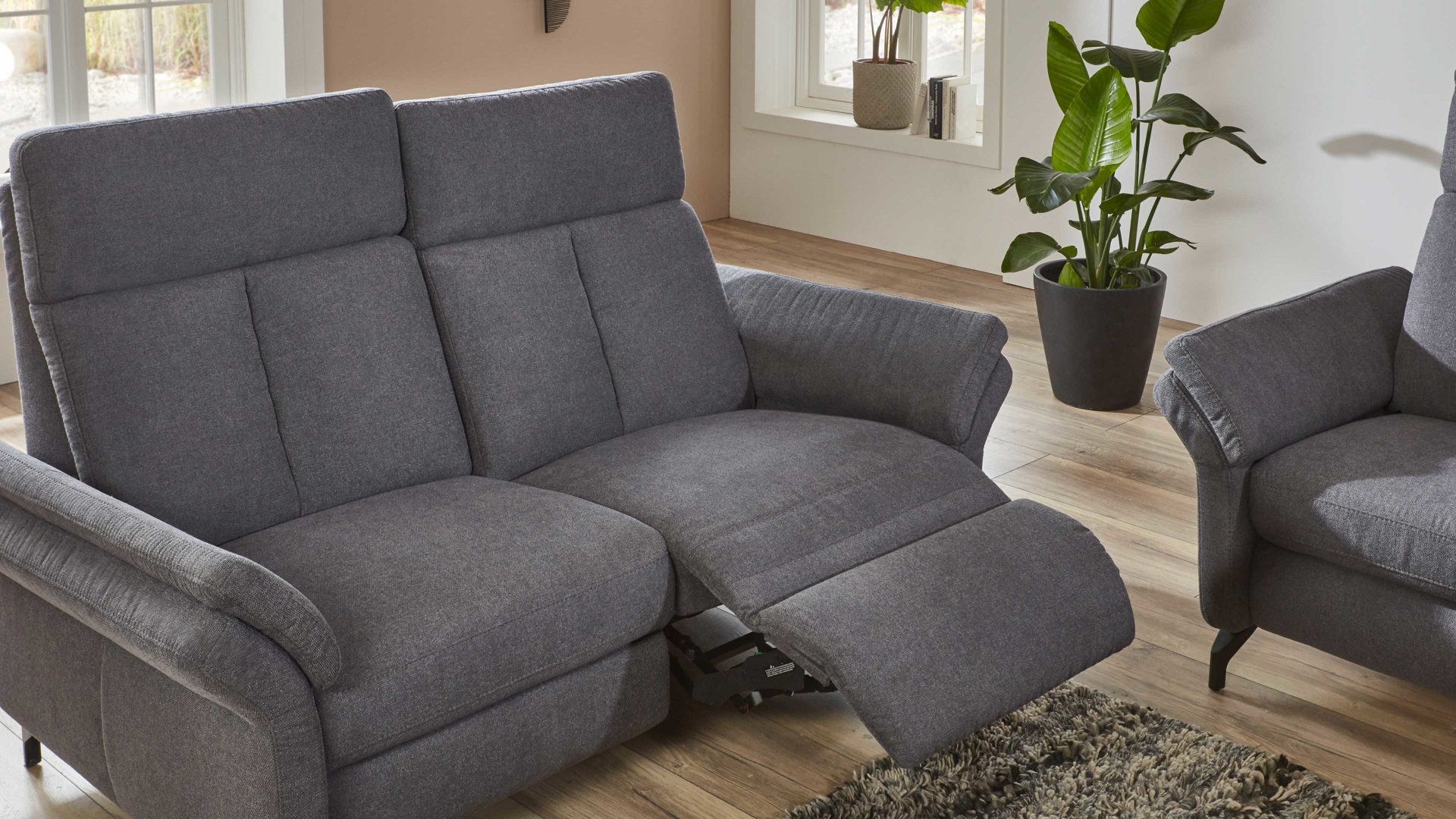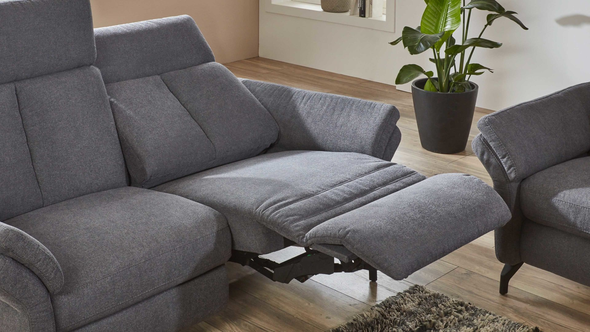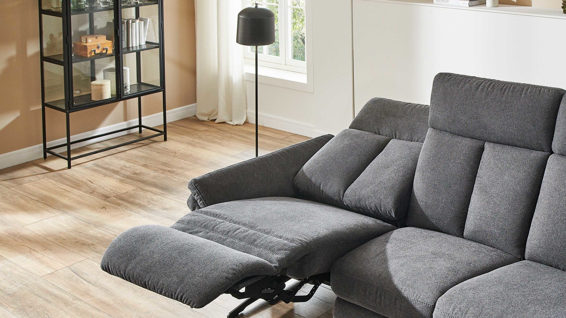 Die motorische TV-Funktion Premium ist ein Funktions-Mehrpreis für die Rundsofas aus dem hochwertigen Polsterprogramm OrthoSedis 4.0. Per Kabel-Handschalter lösen Sie die zwei Motoren aus, die Sitz, Rücken und Fußteil automatisch verstellen - von der Sitz- zur TV- bis in die Liegeposition.